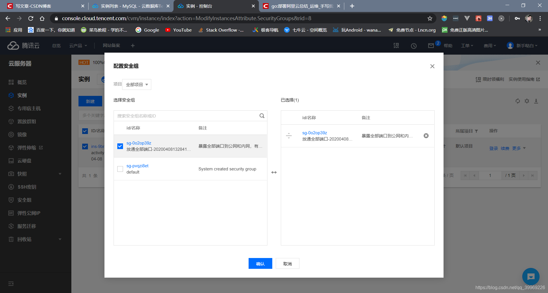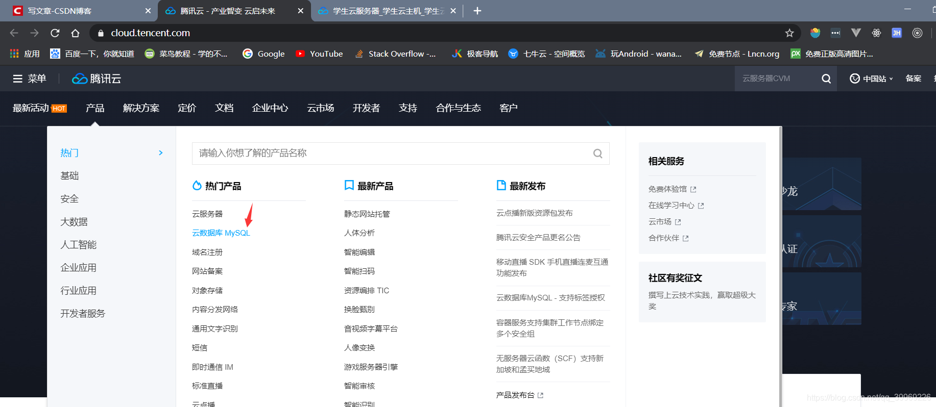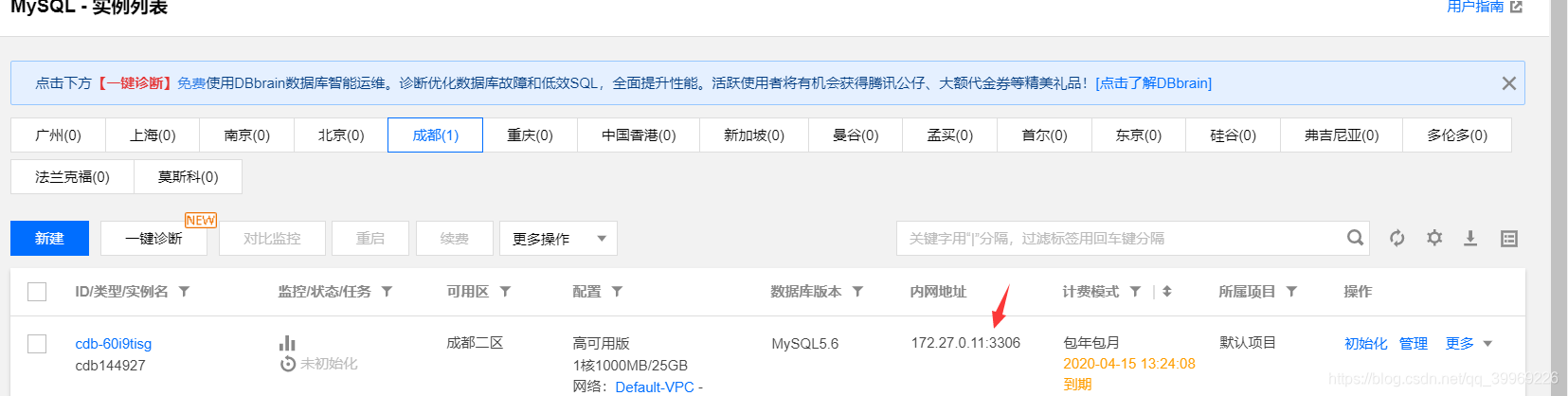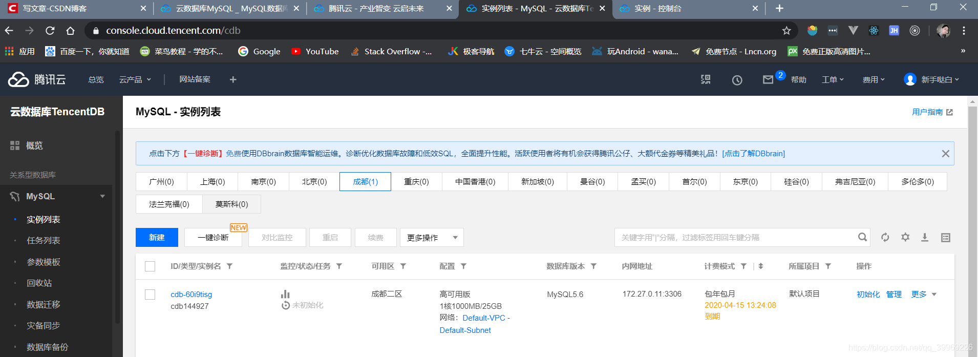 可以看到的是:我这里贴的都是腾讯云试用的服务器和mysql。