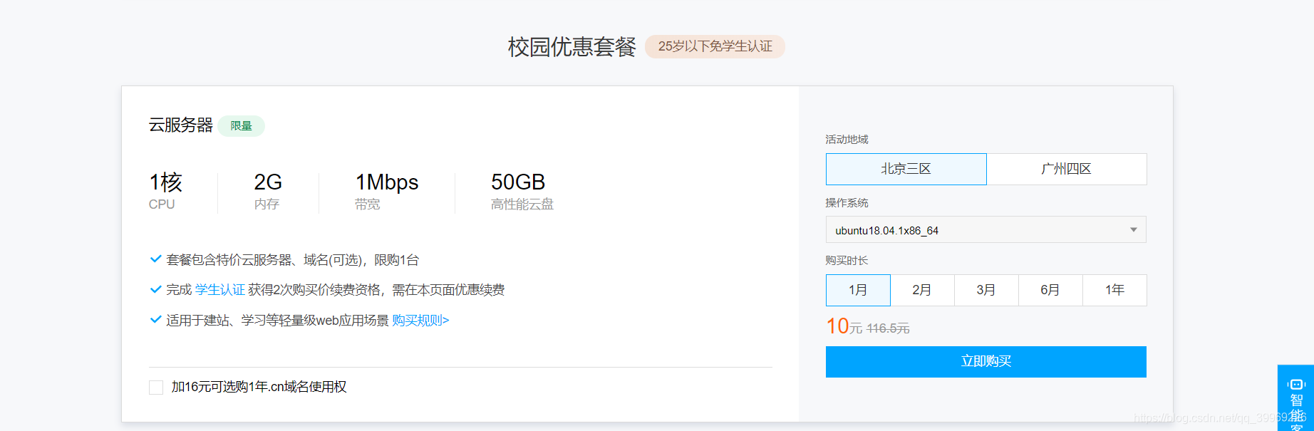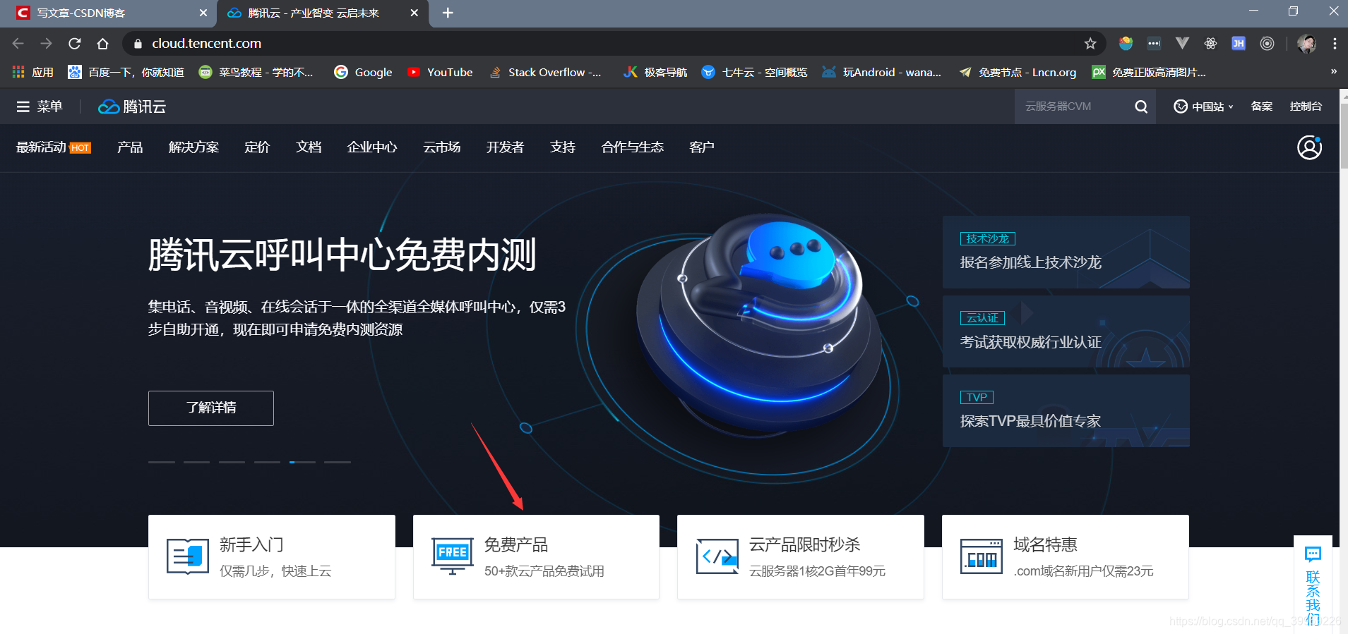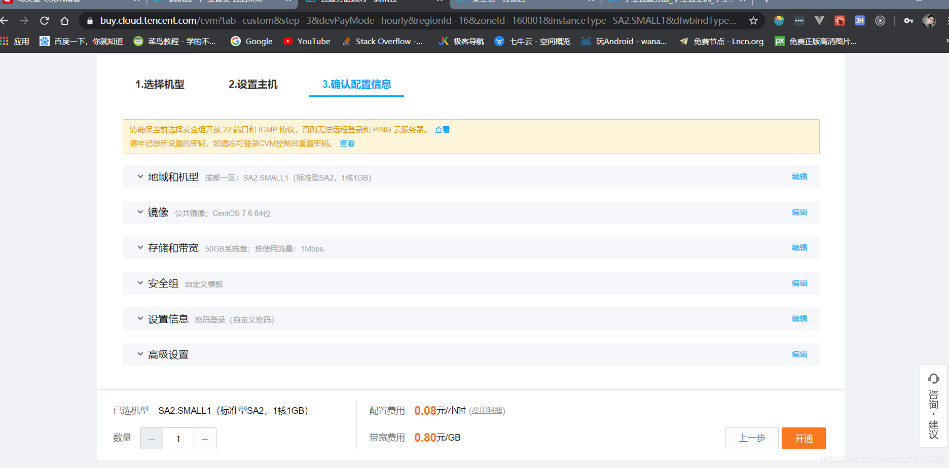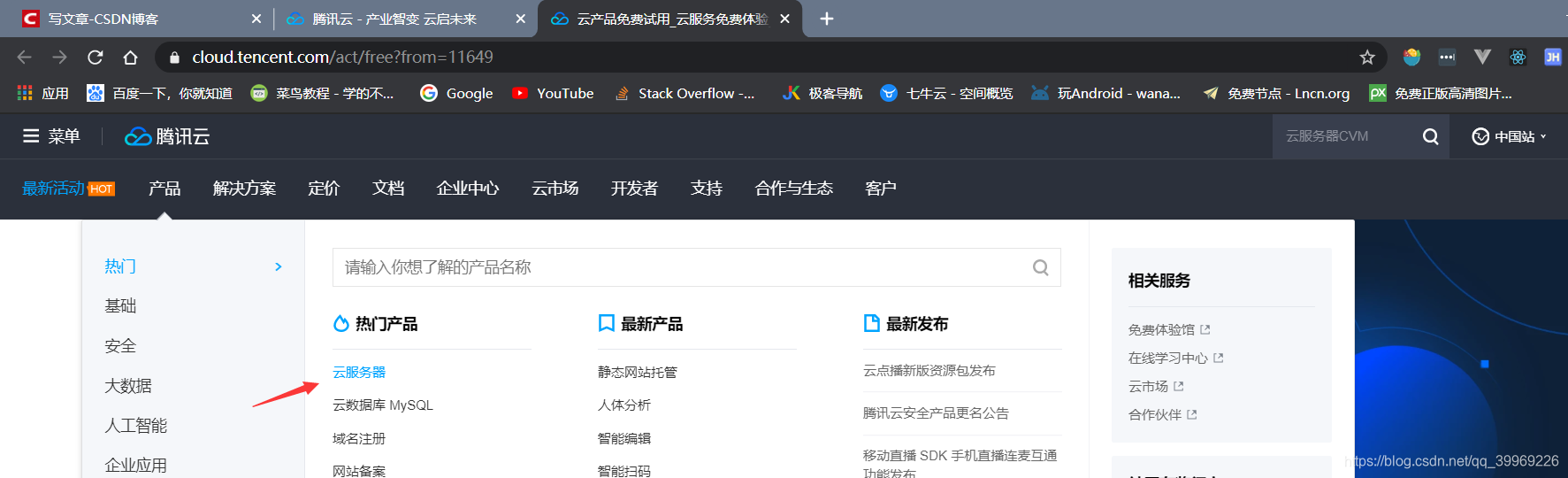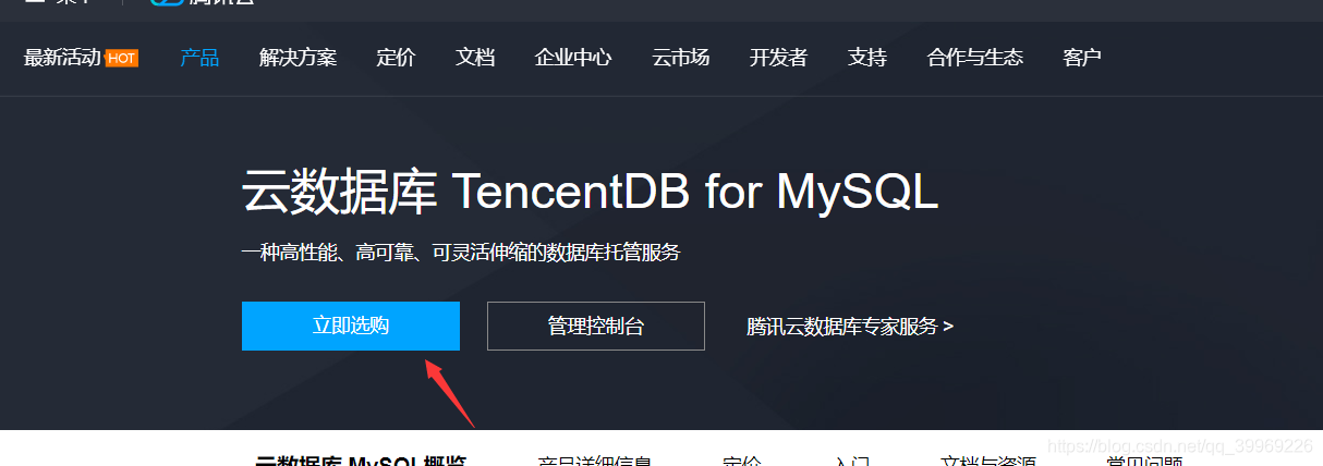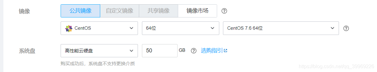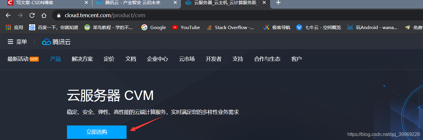云服务器:在腾讯云首页选择相应配置的服务器(这里以centos7.6 64位镜像)