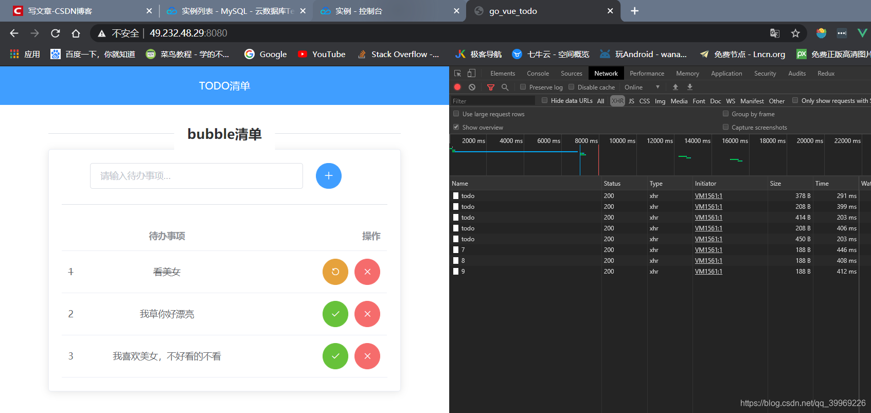 部署到云服务器上的原因:本地开发完一个web项目是可以用本地电脑作为服务器的。但是本地电脑可能因为电脑的环境、硬件等原因导致电脑处于关机状态。此时部署到本机电脑的项目外界就无法通过网络访问了。云服务相对于本地电脑来说,可以保证无时无刻都不处于关机状态,用户可以时刻访问做好的web项目查看效果。项目上线流程:本地开发web项目(这里以go为例)本地环境搭建本地web项目代...