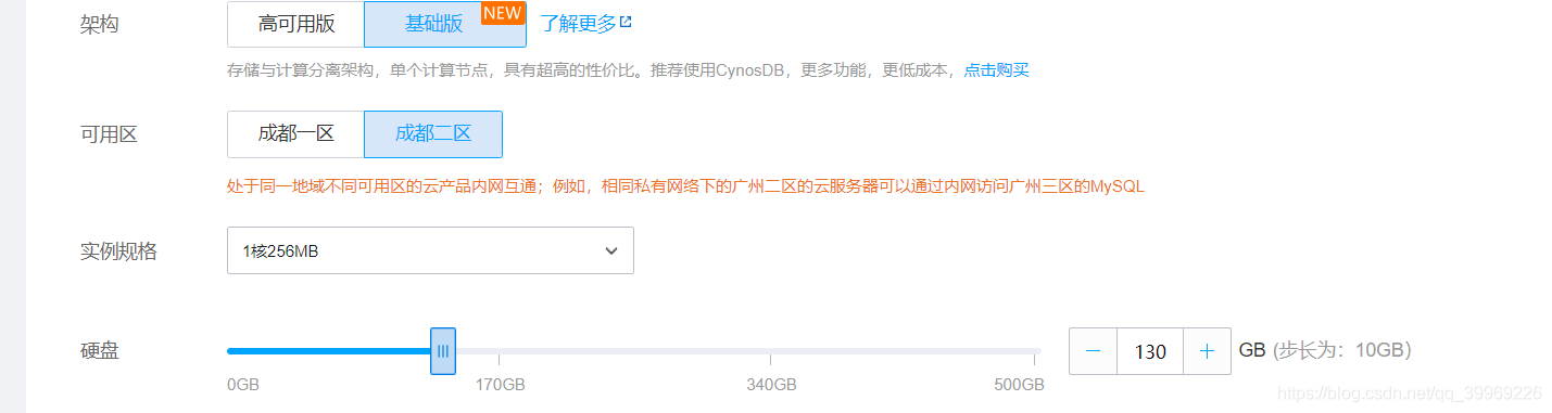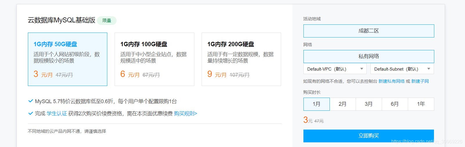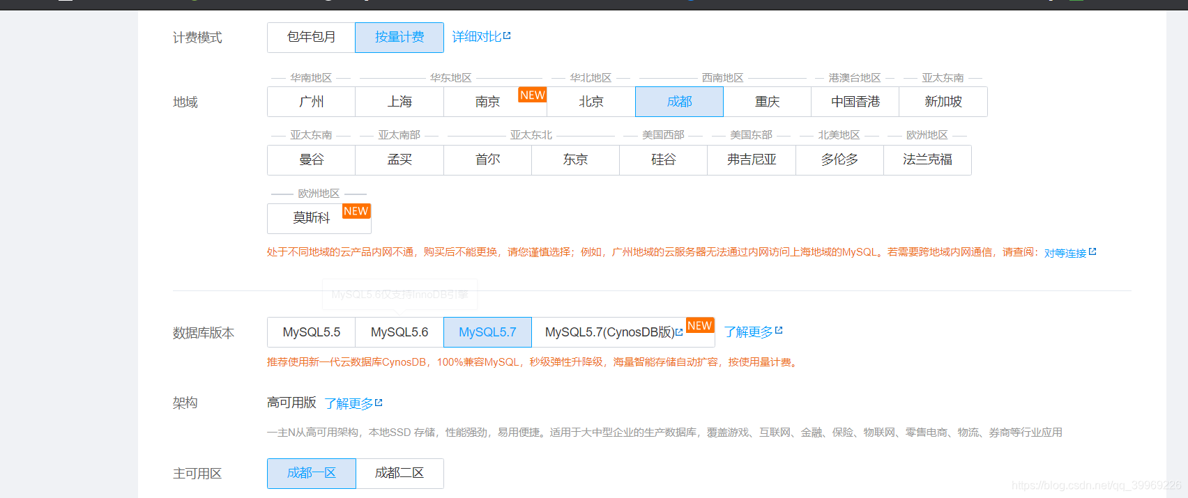 云数据库: 阿里云数据库选择使用MySql5.6/8.x版本数据库,使用流量计费 或 按月计费(学生可学生认证)