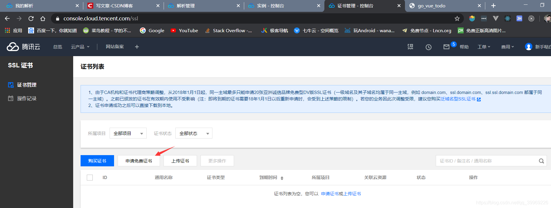 不加前缀https会默认访问http,这是很不好 的,,所以需要http协议跳转https安全配置:(自动跳转可以查看腾讯云文档说明,这里就不做了)