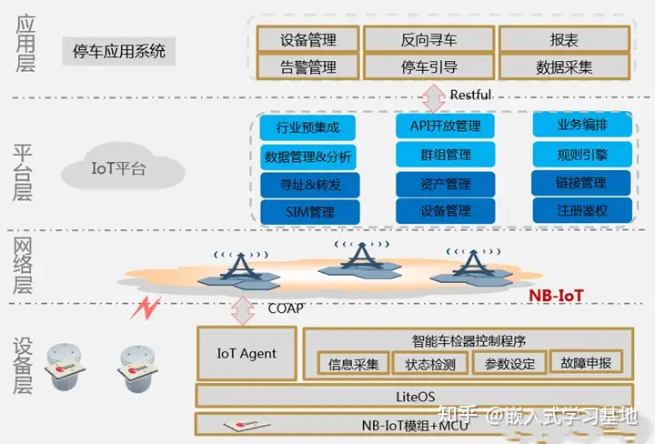 感知层:MCU(微控制器)+(EOS)embeded operation system+海量传感器+通信模块(LoRA、NB-IOT、5G)+电源管理芯片(电池供电、低功耗)+在线升级OTA+信号采集、处理、控制软(嵌入式软件)