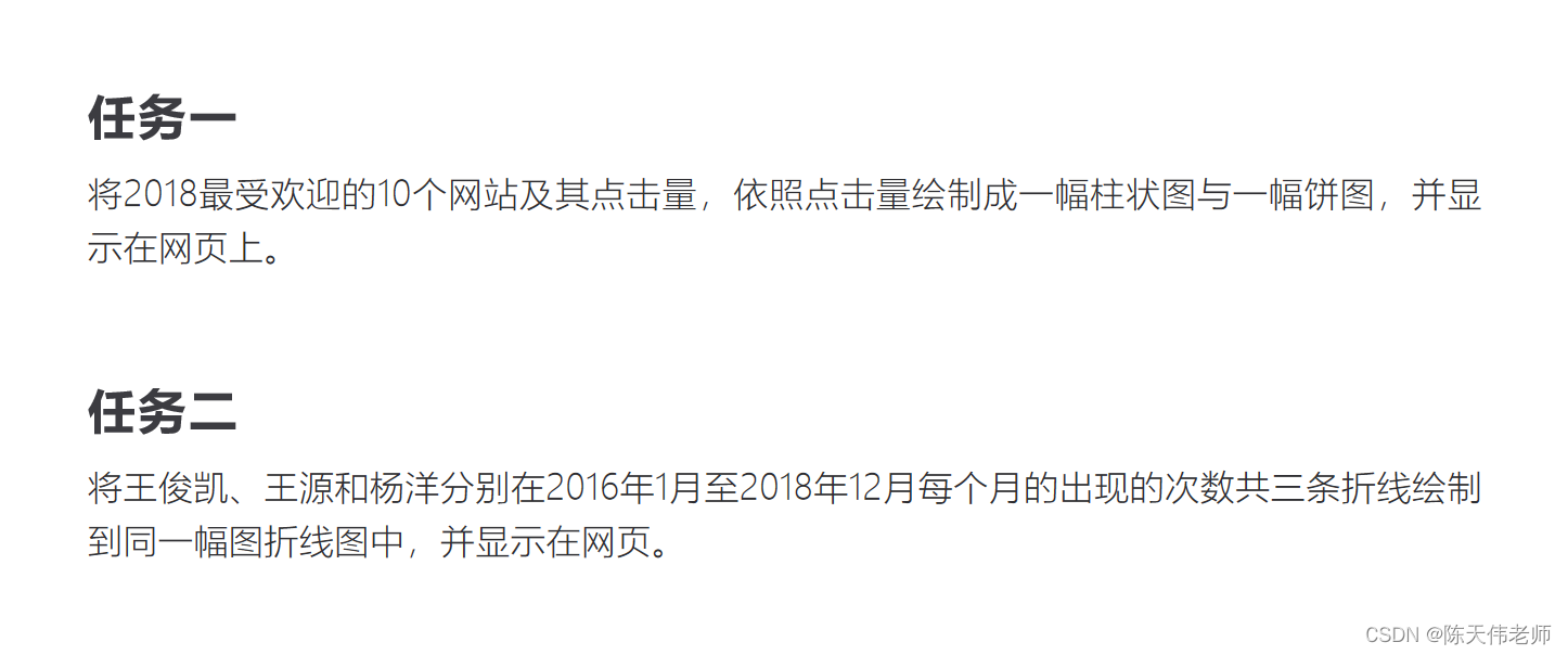 2)编写可视化后台处理程序,按照三个数据统计图表的数据格式进行数据封装,并将封装后的数据传递到Jinja2模板的自定义变量中。