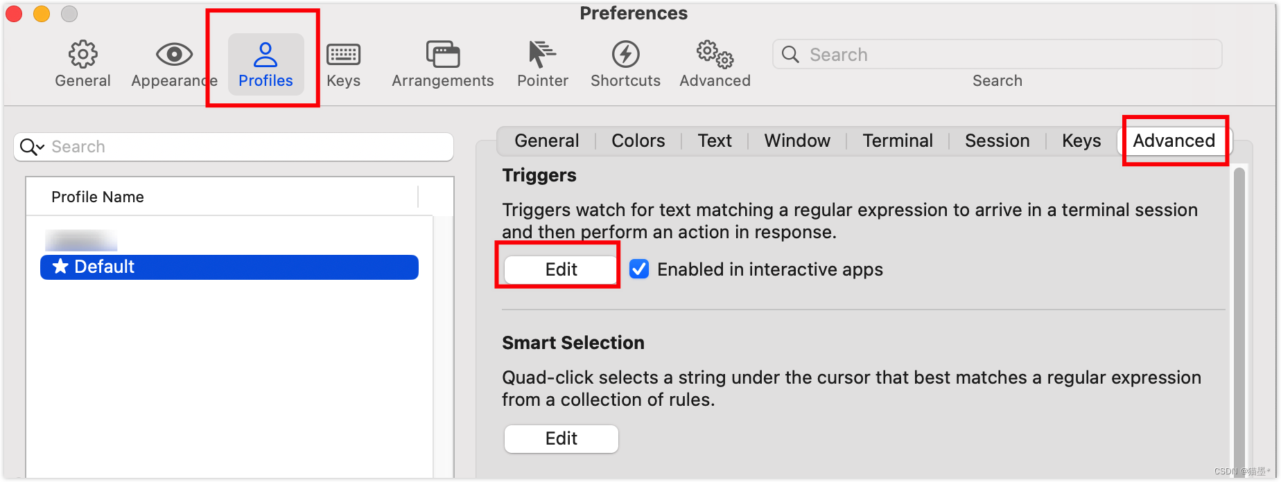 4、iterm2设置-->Profiles-->Advanced-->Edit