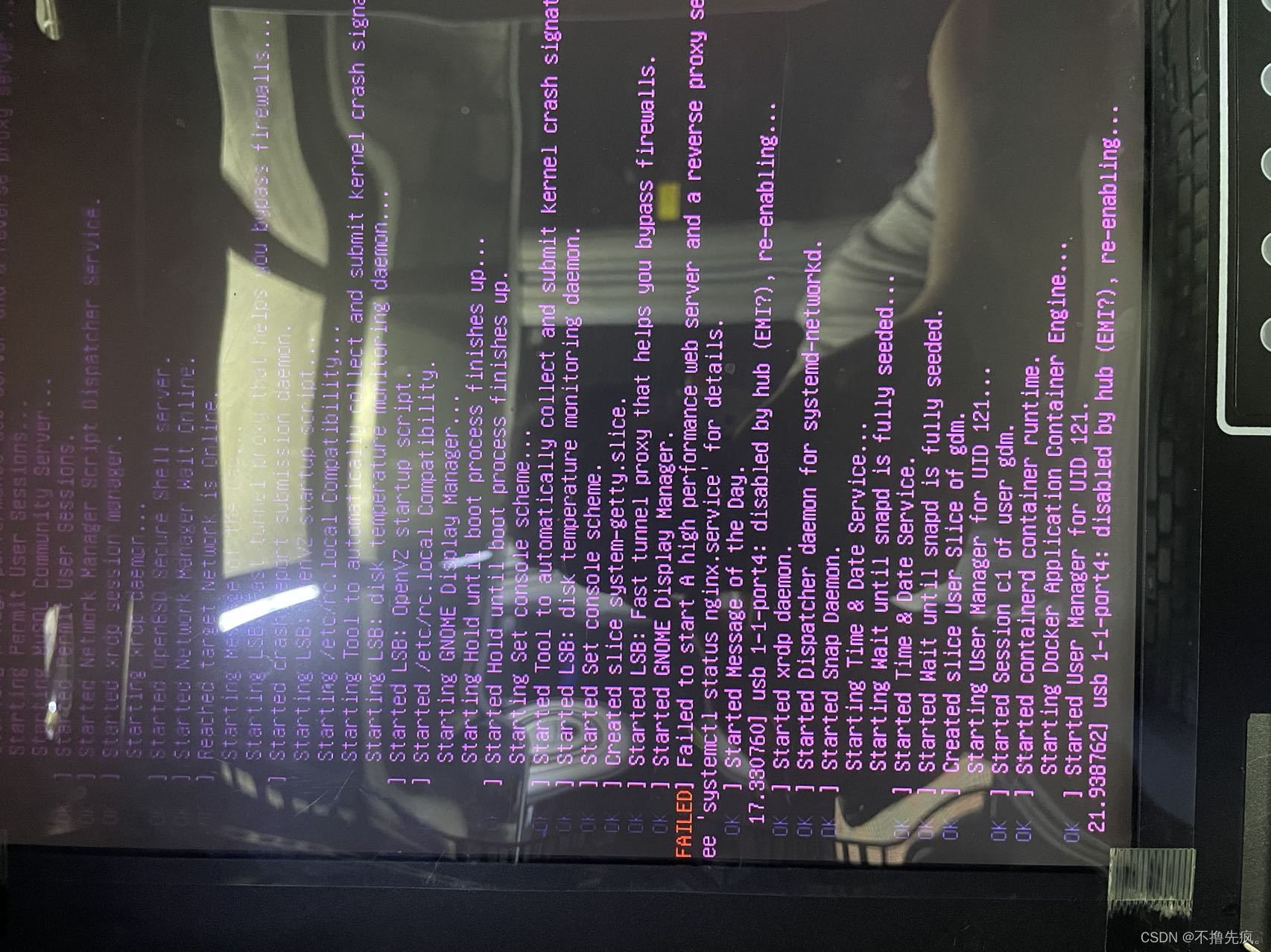 服务器开机启动报错: 报nginx和usb端口有问题。1.首先排查usb端口问题,开机按F2,进入BIOS,尝试:(本次尝试失败)2.尝试修复开机进入GNU界面,选择第二个:Advanced options for Ubuntu选择有recovery mode的选项。Recovery Mode中的dpkg:尝试修复破损的包(本次尝试失败)3.修复网络上述步骤同2.,最后选择network选项,进行