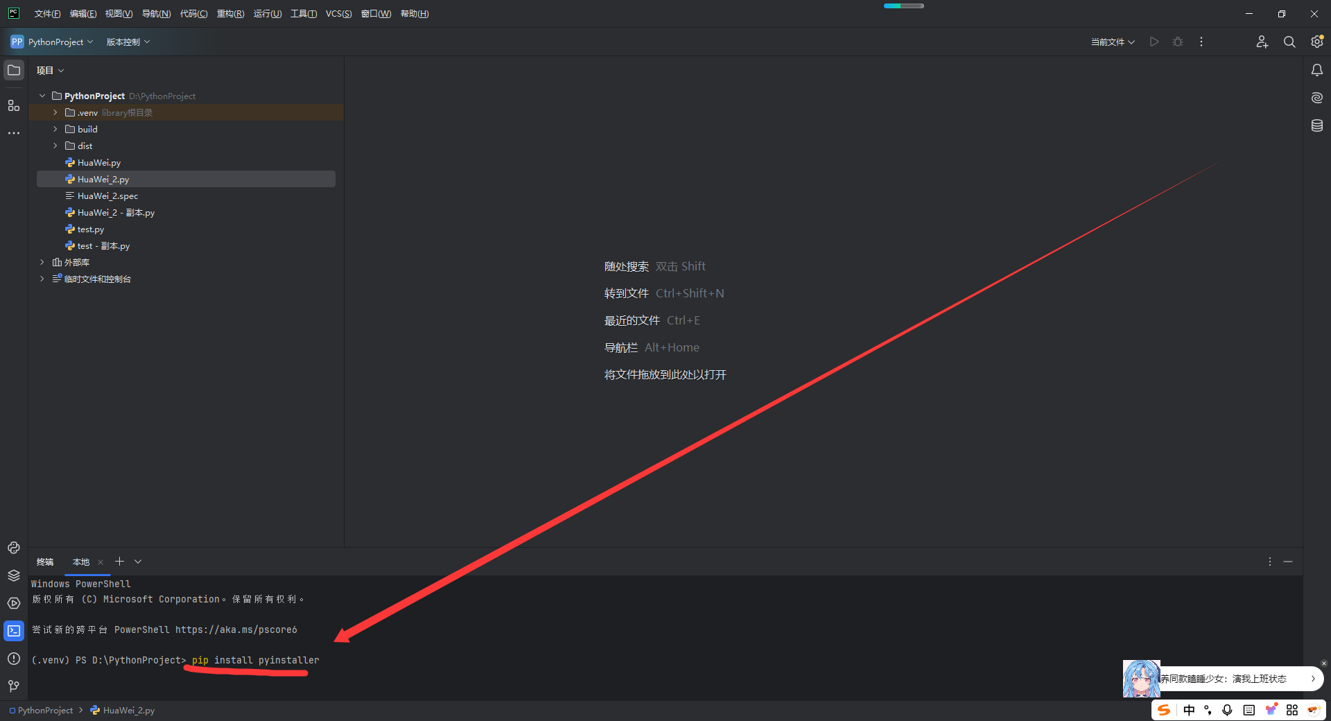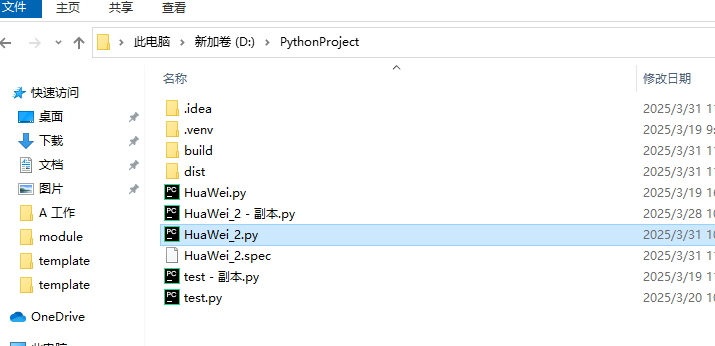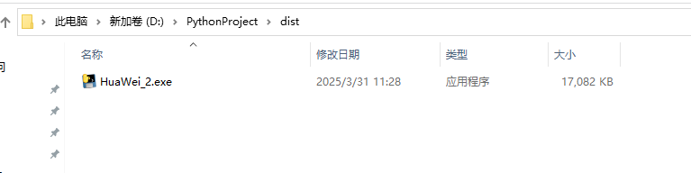 【也可写成(无黑窗弹出):pyinstaller -F -w HuaWei_2.py】