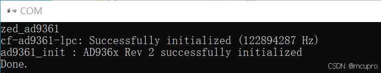 开启电源在串口助手中查看打印信息,如下图所示为AD9361初始化成功。