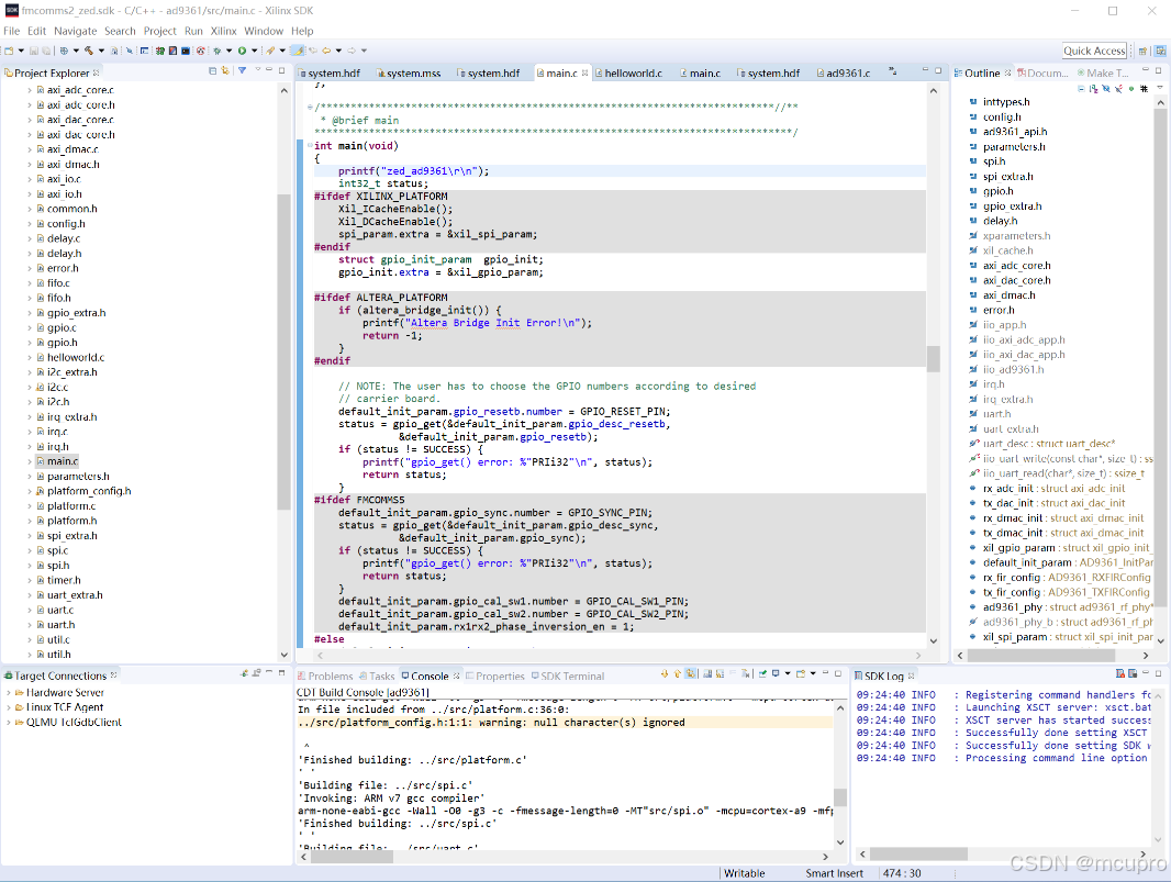 如下图所示,是我们将ZED+AD9361移植到SDK中的项目,可以在Windows或Linux环境下使用SDK直接修改编译。购买配套开发板和子板可以获取详细的移植教程,其同样适配其它子板的移植。