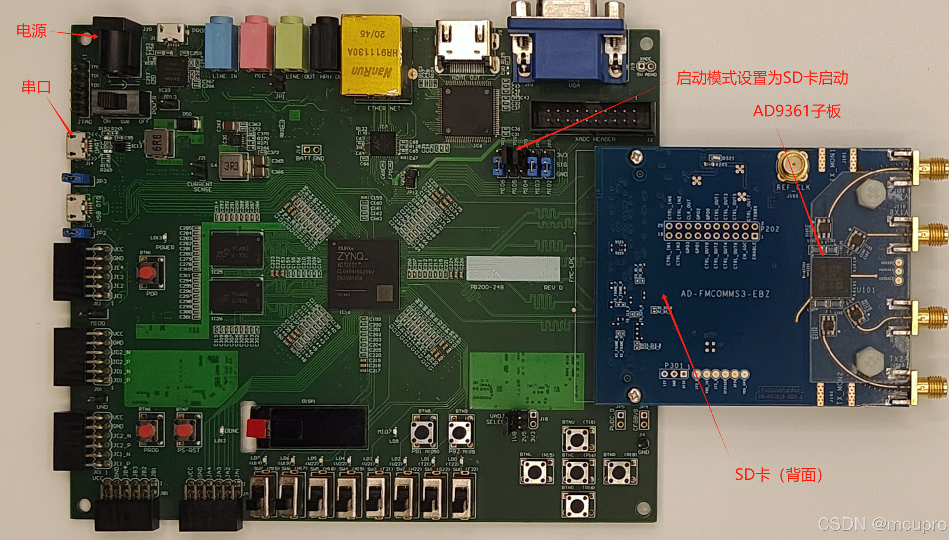 将网盘链接中BOO.BIN文件复制到SD卡中,使用SD卡启动。或者烧写到flash中,烧写需要用到的fsbl.elf文件也网盘链接中。将SD卡插入开发板,并将开发板的启动模式设置为SD卡启动,插入电源和串口。