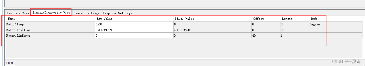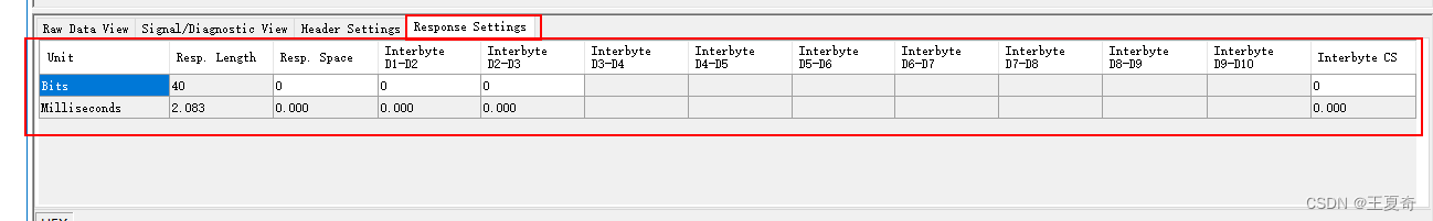 底下具体工作栏,分为两种View,RawDataView,Diagnostics/signalVIEW和两种SETING(HeardSeting和ResponseSeting)