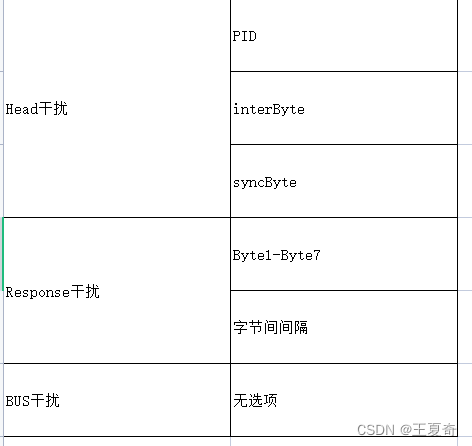 4):干扰类型:Head干扰、Response干扰、BUS干扰