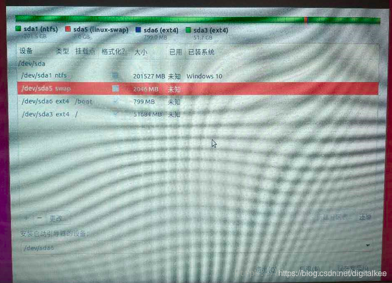 将”安装启动引导器的设备”改变为”/boot”所在的设备,我的电脑是sda6。