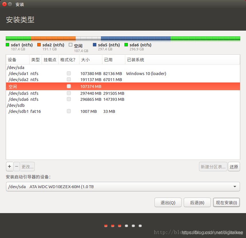 在点击”现在安装”以前,用Ctrl+alt+T调出终端,输入命令 sudo umount -l /isodevice 以防止分区失败。