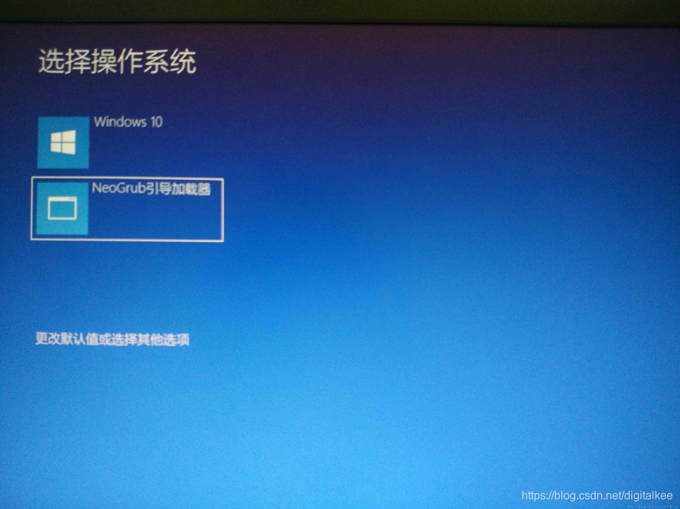 重启之后会出现”NeoGrub引导加载器”的选项。