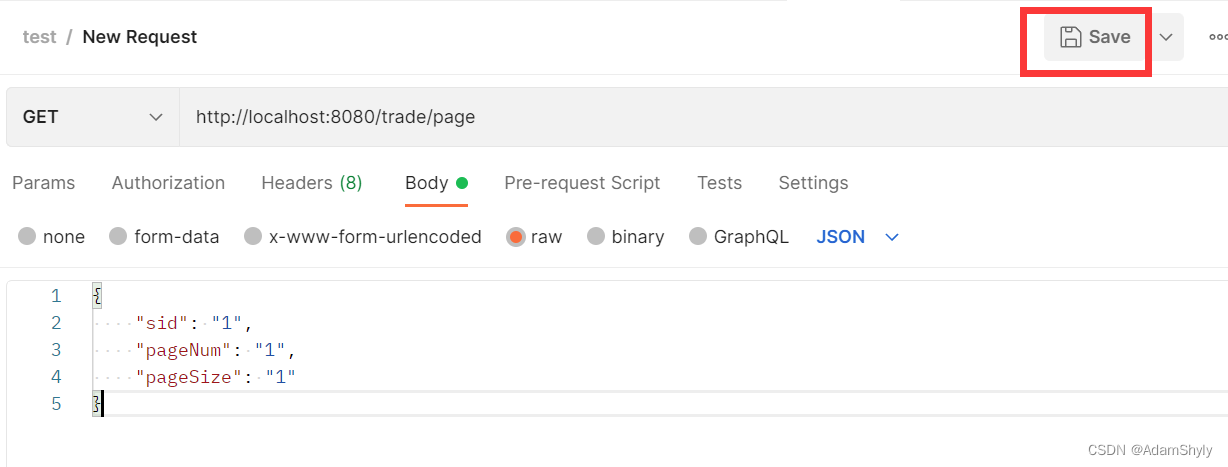 第四步:修改 request 中的 RequestBody 以及 URL,修改完毕后一定要点击save按钮进行保存