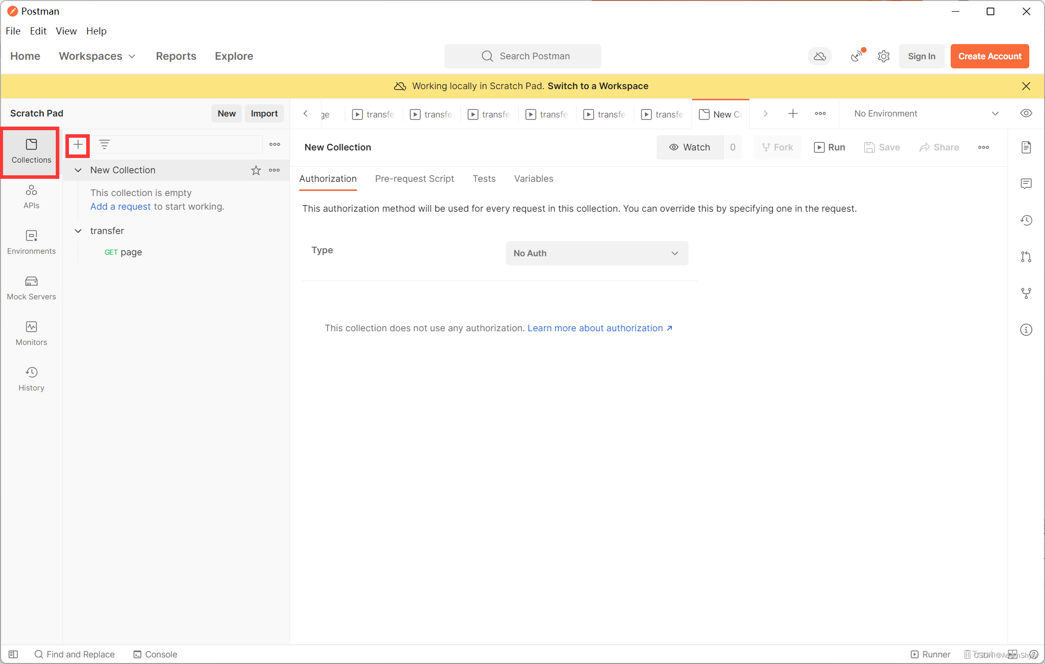 第一步:点击Collections中的 '+' 按钮新增一个Collection