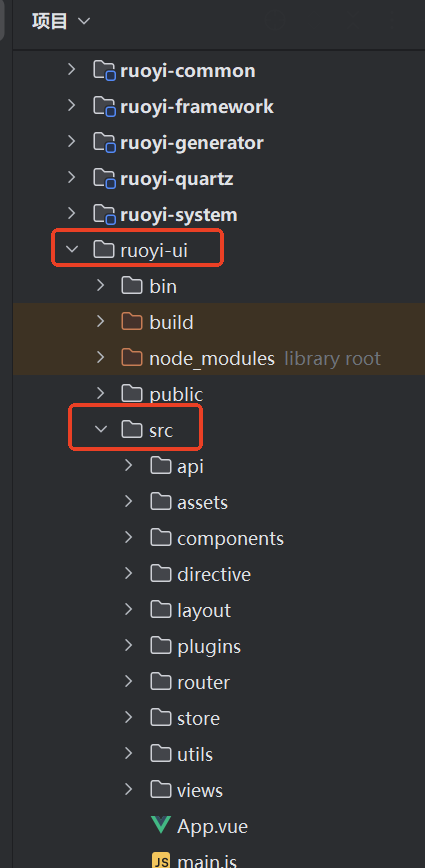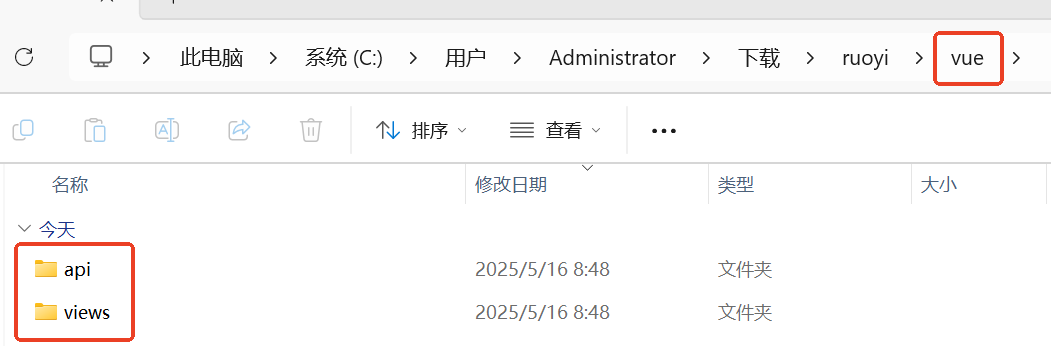 将 vue 中的 api 和 views 文件夹 复制到 ruoyi-ui/src 目录下 覆盖即可: