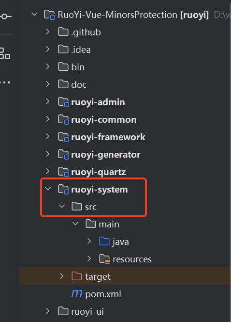 将 main 复制到 ruoyi-system/src 目录下 覆盖即可: