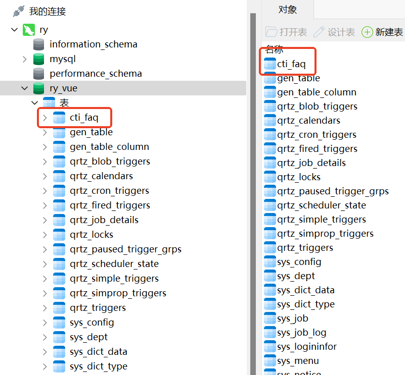 以cti_faq 问答对表为例。首先在 mysql数据库 中建张 cti_faq 表: