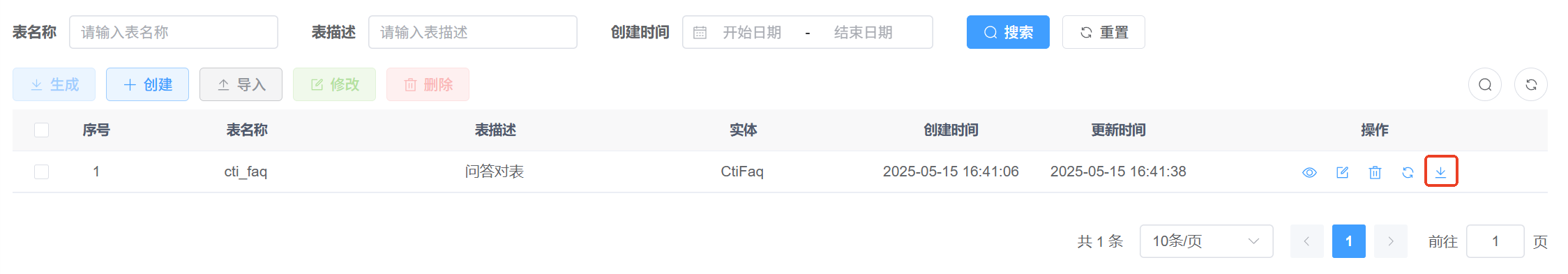 重新启动 后台java 和前端vue。就会在 系统工具 菜单 中的 看到新增加的 问答对 模块。以cti_faq 问答对表为例。点【导入】 ,选择【cti_faq】解压后,里面有三部分。