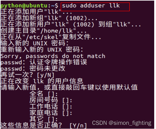 指定用户名:创建新用户,在Ubuntu系统下输入 sudo adduser llk--创建新密码