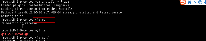 输入rz命令,选择window中需要上传的压缩包就可以了