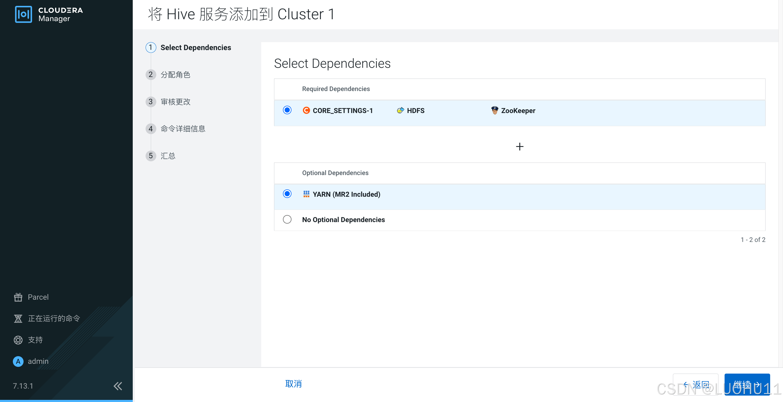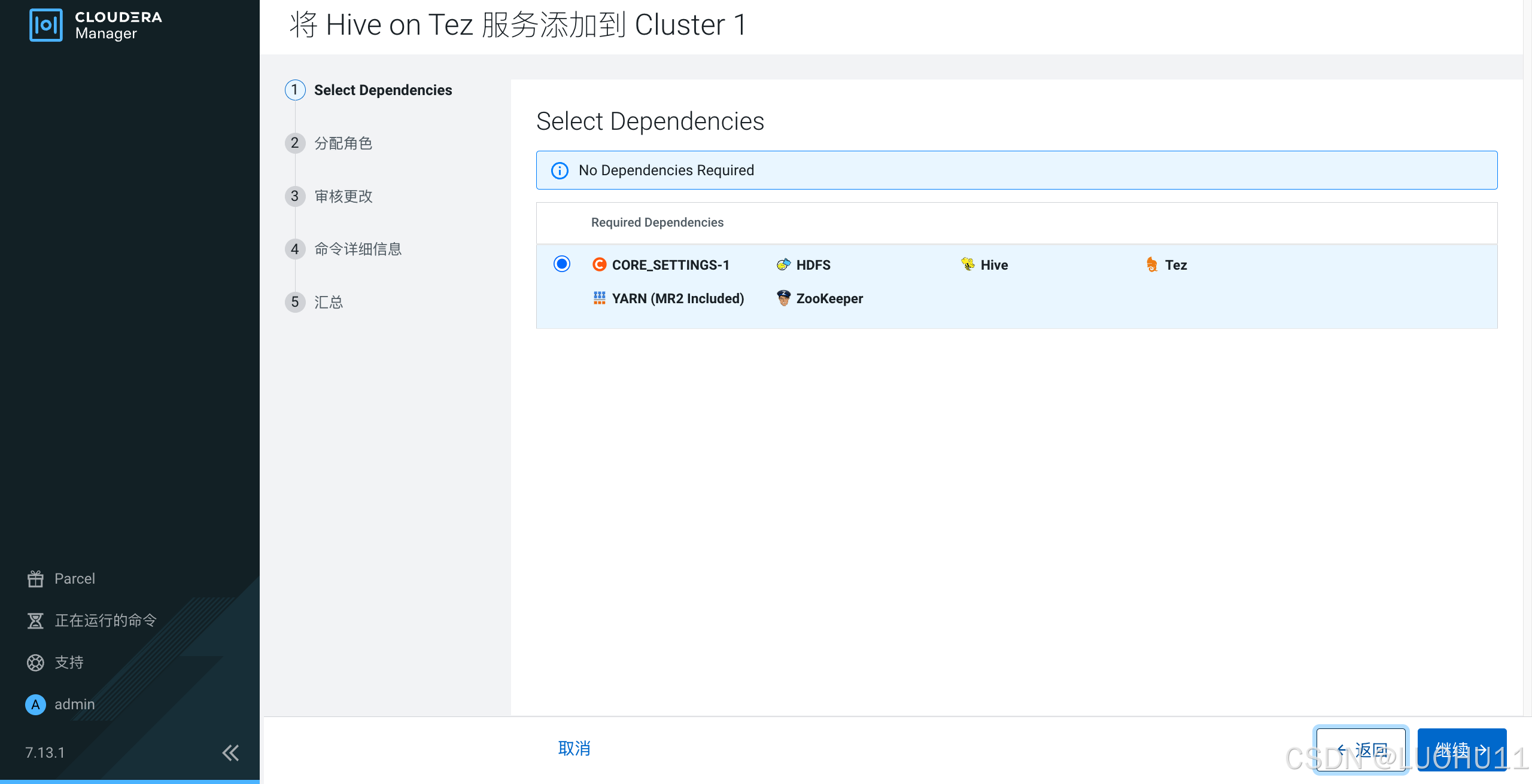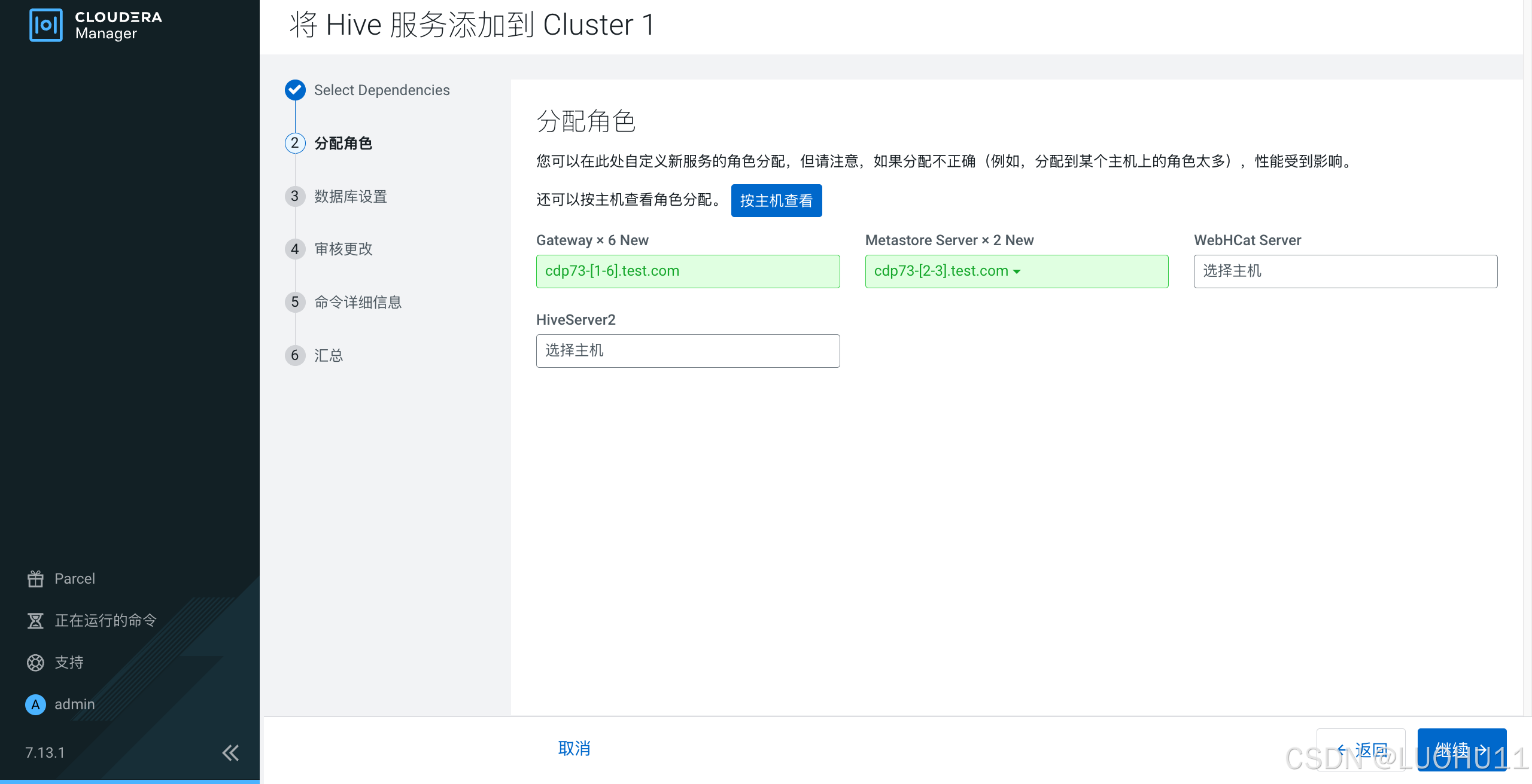 【重要提示】在 CDP中,传统 Hive 服务中不允许有 HiveServer 2 角色实例。请仅在 Hive On Tez 服务中安装 HS2 角色实例。简而言之就是这里不用配置HiveServer 2 角色实例。
