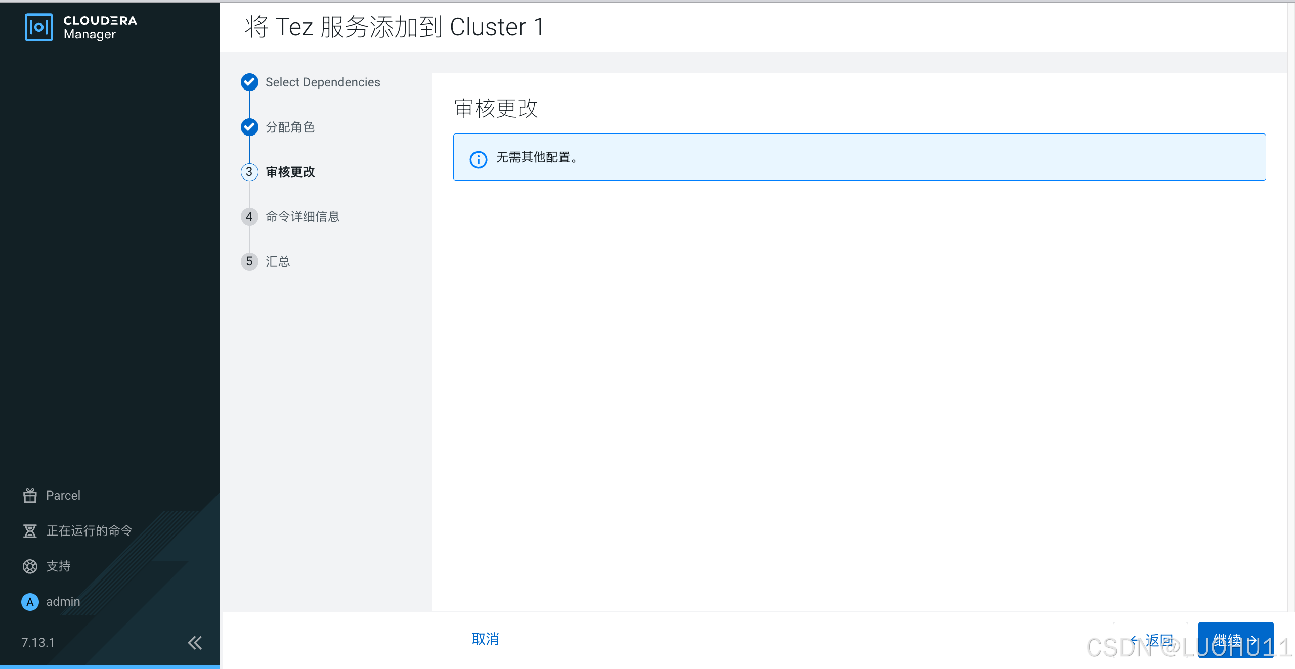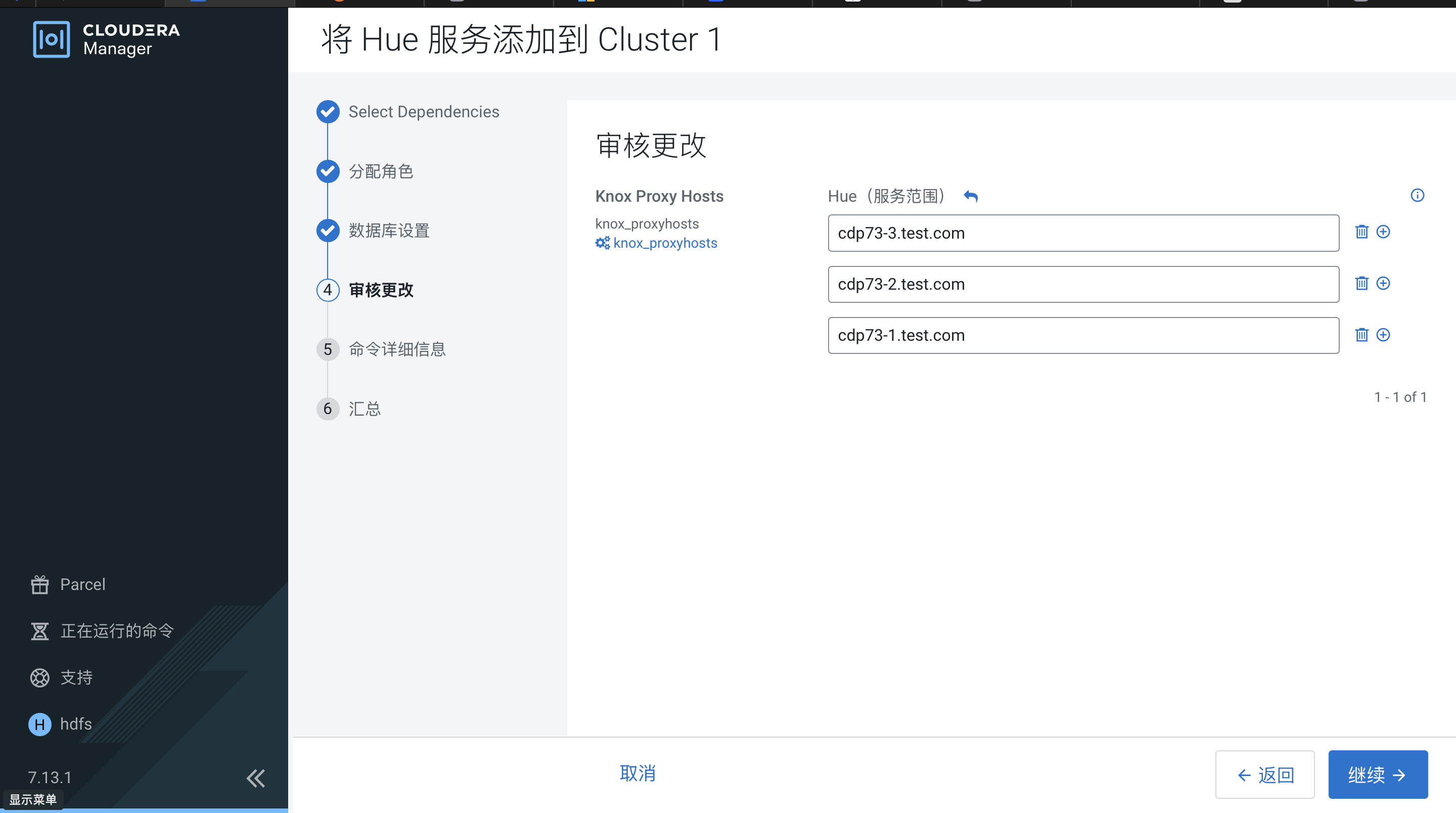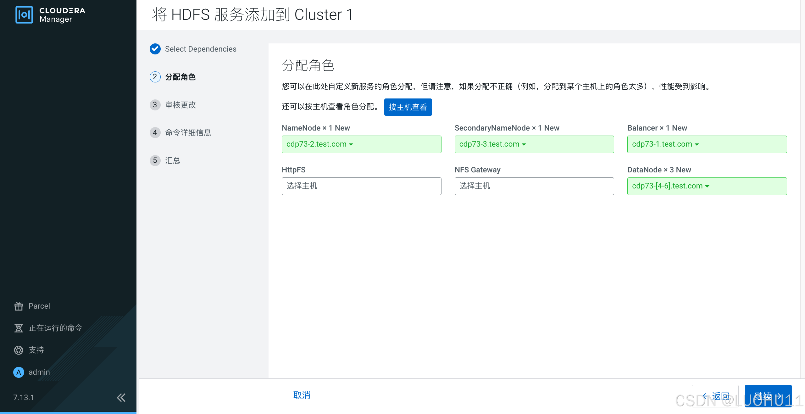 【重要提示】在 CDP中,传统 Hive 服务中不允许有 HiveServer 2 角色实例。请仅在 Hive On Tez 服务中安装 HS2 角色实例。简而言之就是这里不用配置HiveServer 2 角色实例。