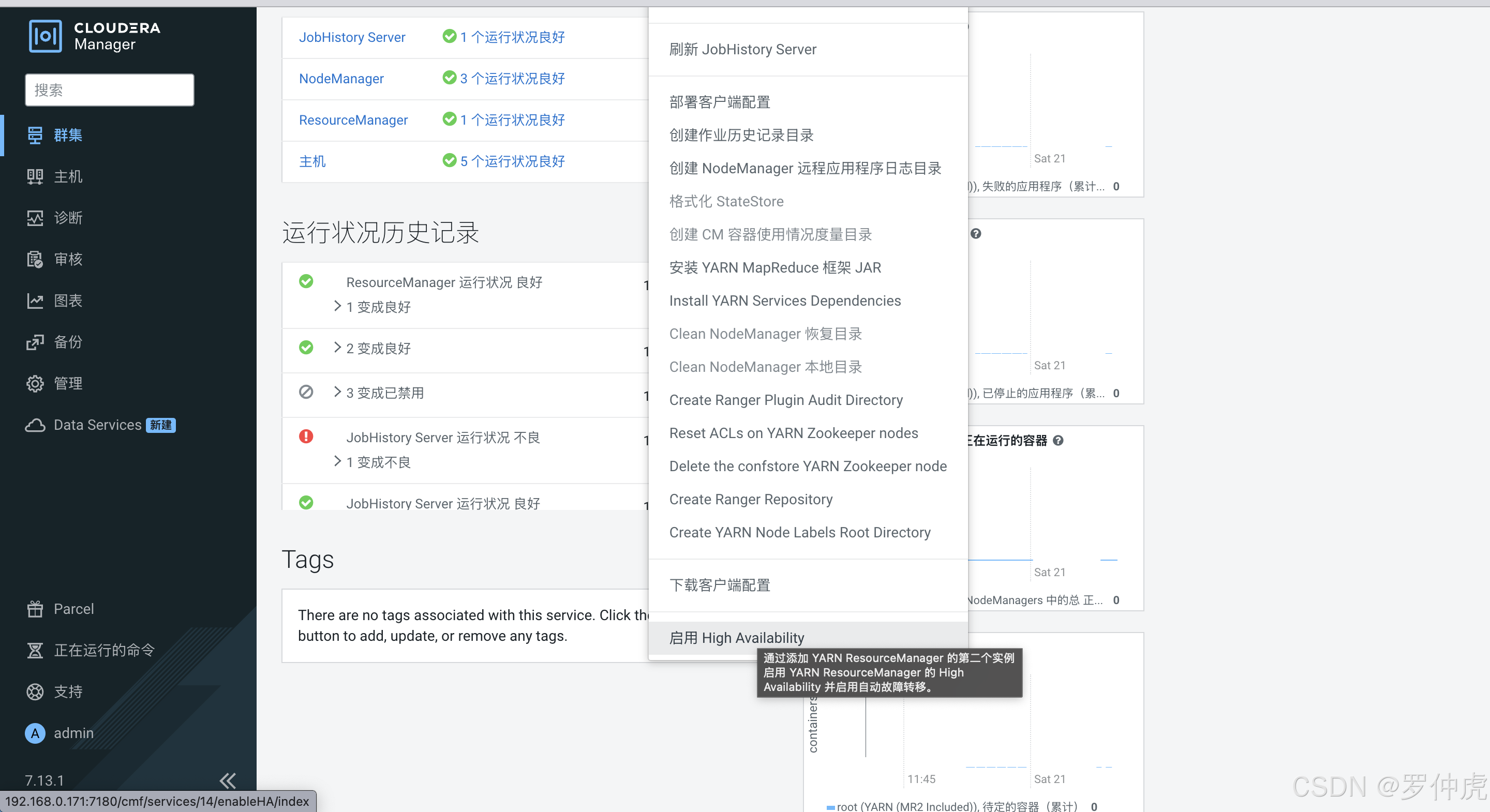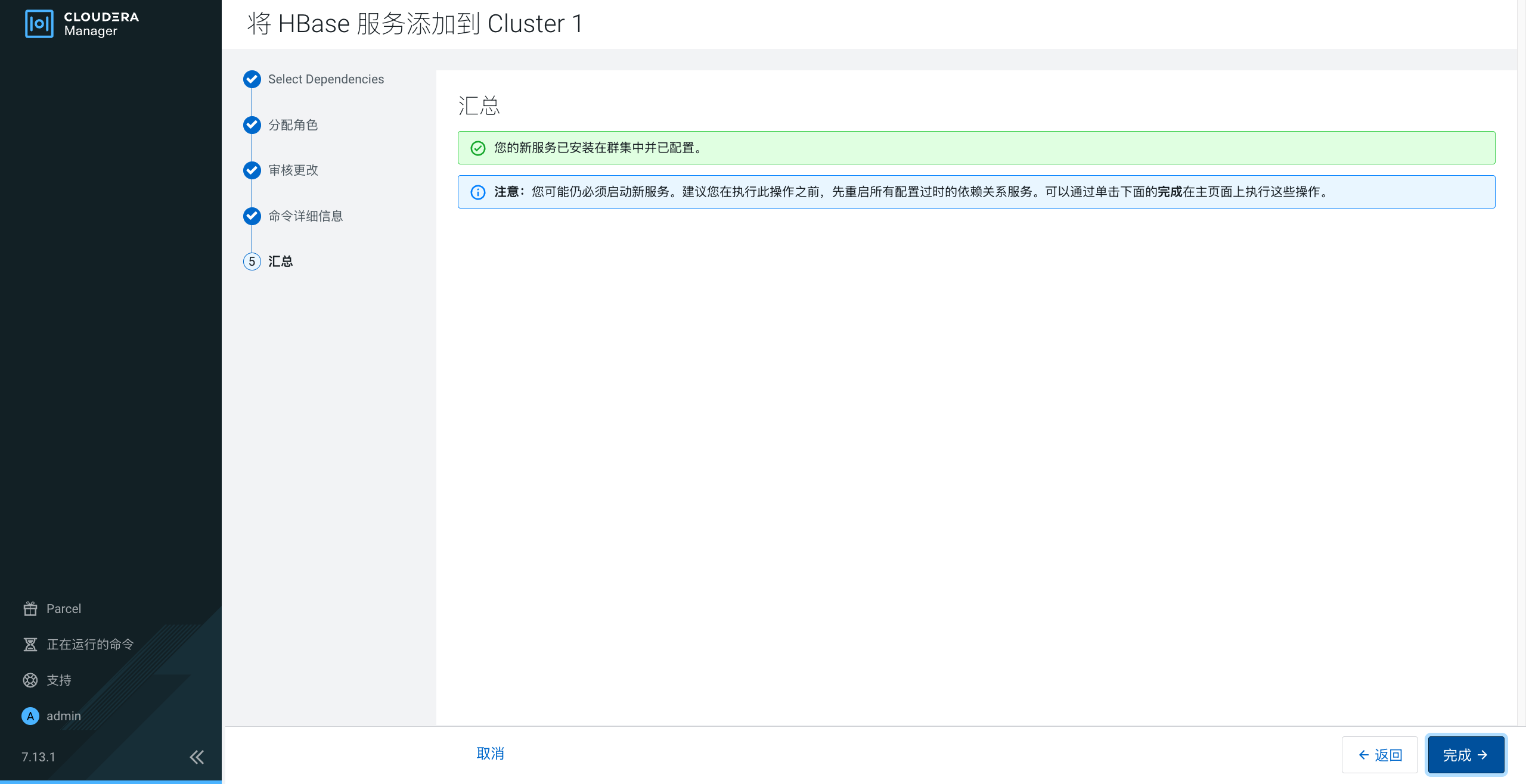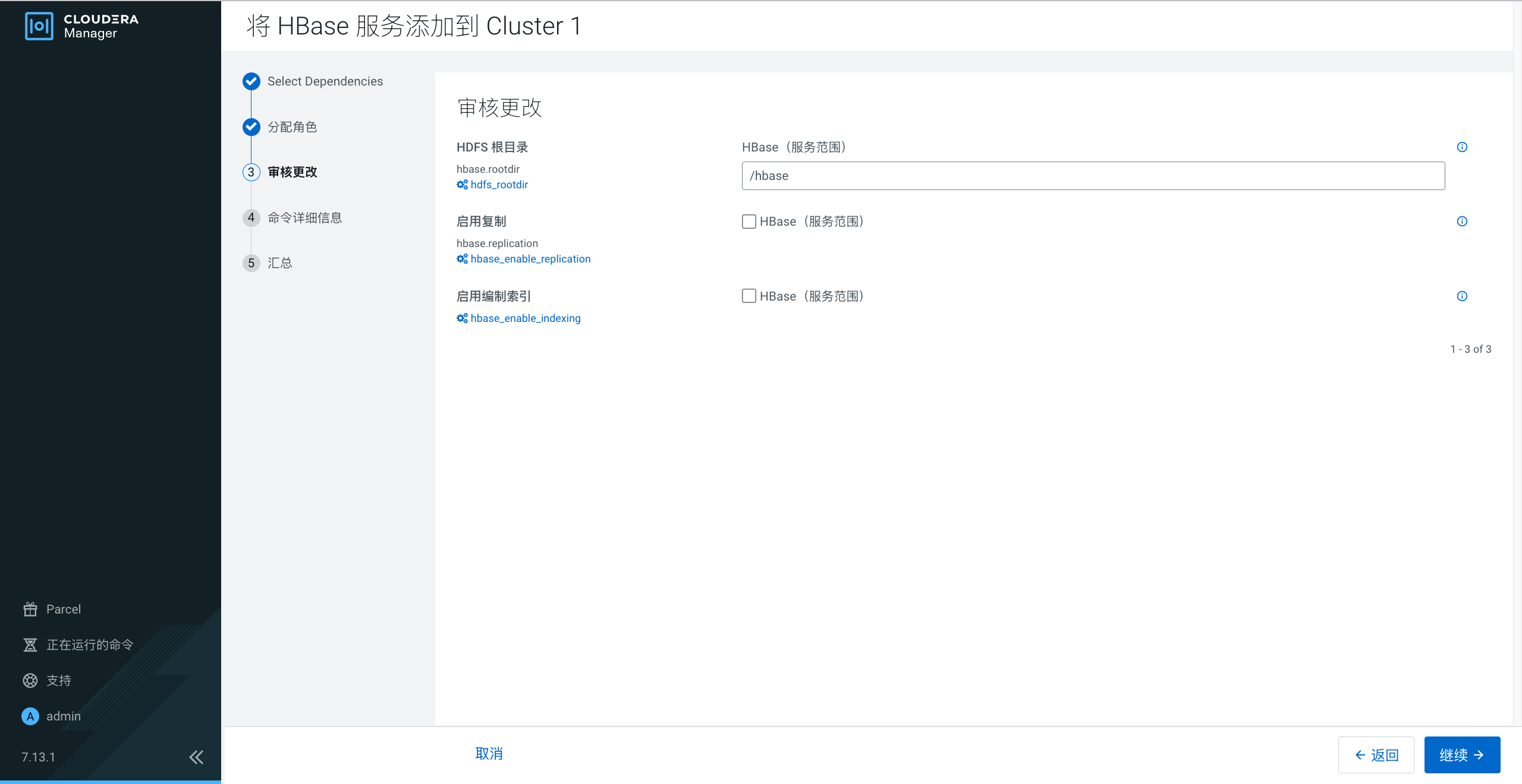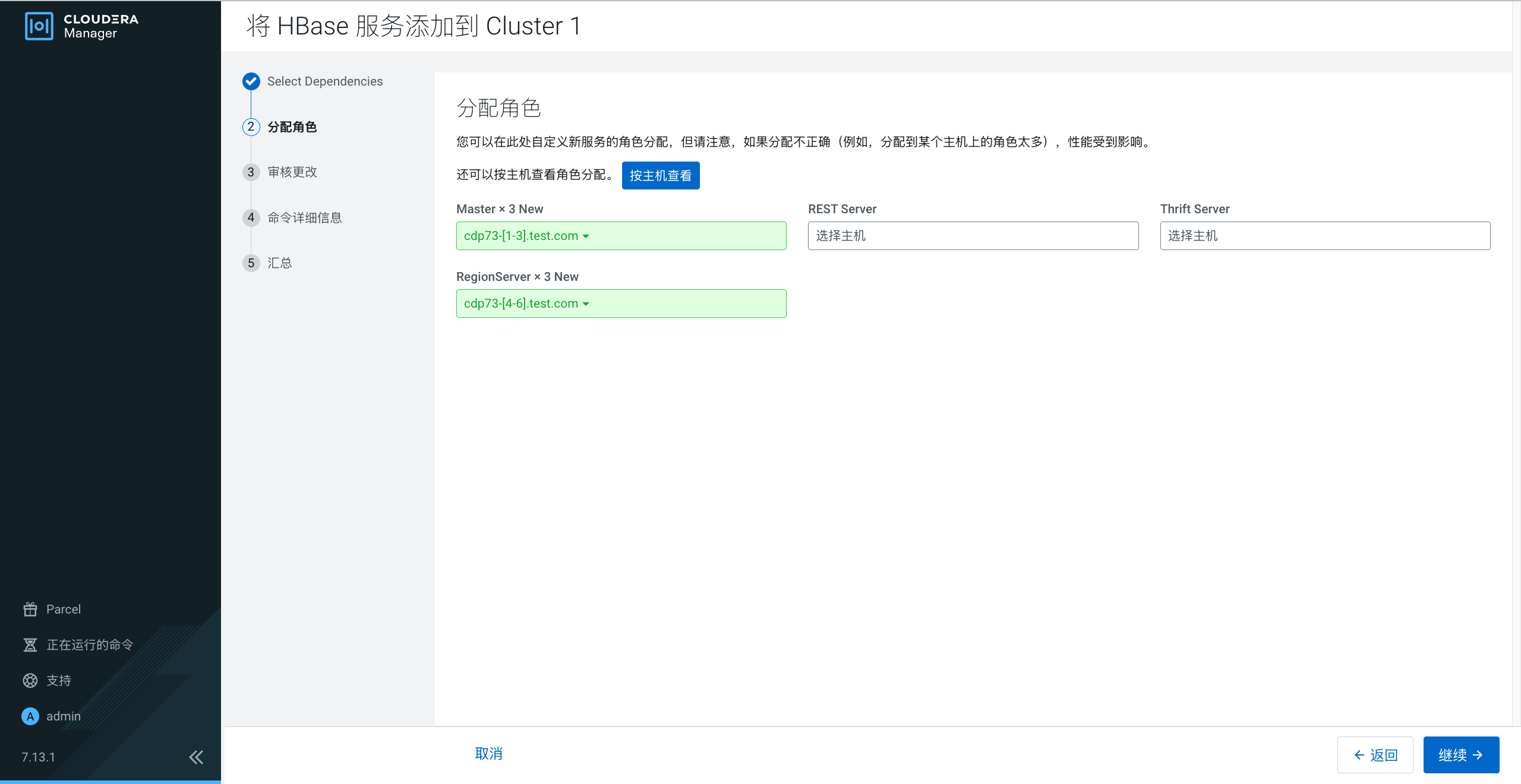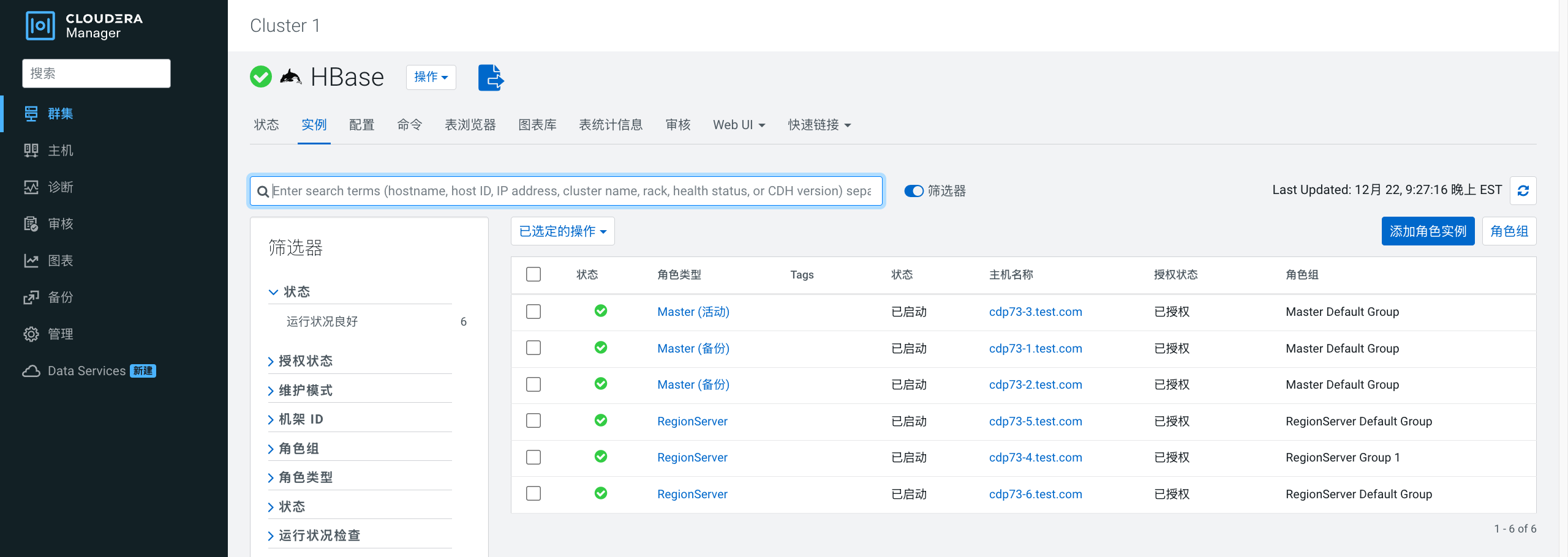 配置Hbase高可用非常简单,您需要按照添加角色实例的流程操作,并将备份 Master 添加到与活跃 Master 运行所在主机不同的主机上。因为我在安装时就安装了三个Master,故已经开启了高可用。