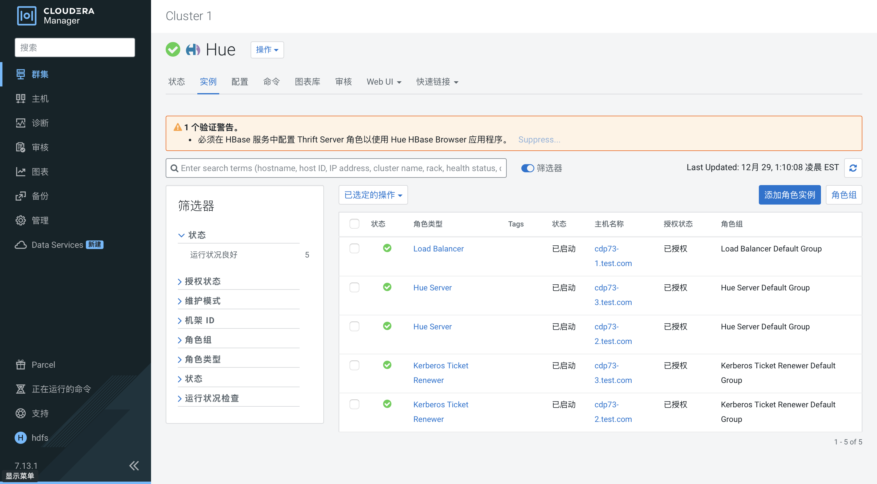 【一般提示】在生产环境中,安全性的重要性不容小觑。TLS和Kerberos构成了您CDP运行时环境安全操作的基础。Cloudera仅在Kerberos已启用以进行用户身份验证的集群上支持如Ranger和Atlas等安全服务。