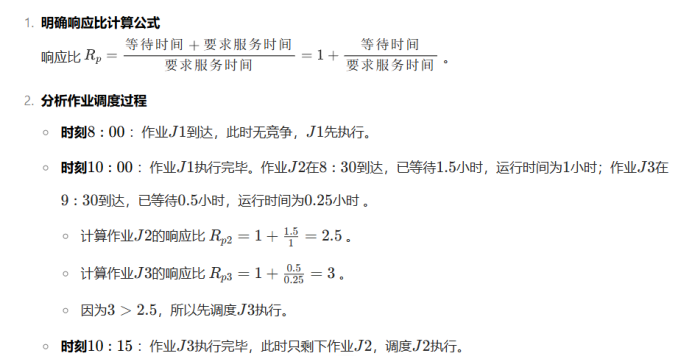 作业J4的响应比=1+(10.0-9.0)/0.5=3