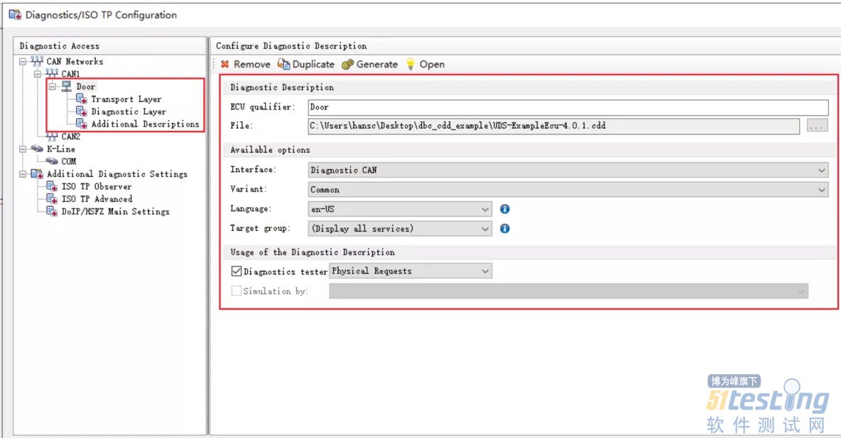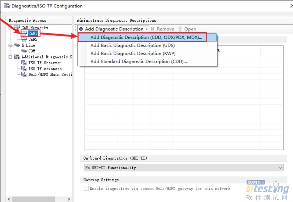 测试目的:校验控制器关于诊断. 51Testing软件测试网,人气很旺的软件测试技术门户,提供测试文章、测试交流、测试招聘、培训等全方位信息服务,内容覆盖APP测试、性能测试、自动化测试、验收测试、兼容性测试等,是国内很专业的软件测试就业培训、企业服务供应商...应用场景:被测项目中,OEM未释放对应的诊断数据库CDD或者ODX文件(ODX打包格式是PDX),测试工程师所在公司没有编辑诊断数据库的