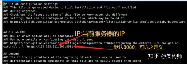 vi /etc/gitlab/gitlab.rb 进入gitlab.rb修改IP和端口:进入编辑器后按“i”键进入编辑状态,ESC键退出编辑状态,退出并保存,命令输入“:wq”
