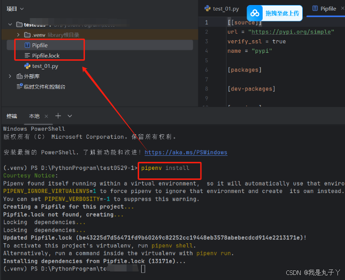 创建虚拟环境后,会自动生成一个Pipfile文件和一个Pipfile.lock,项目提交时可将这两文件一并提交