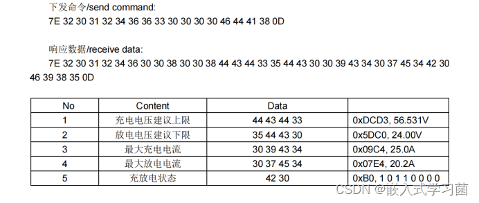 根据派能协议,报文标黄的对应充放电状态,30 30对应的数据为0 0,说明充放电状态全部置0,导致逆变器无法逆变。