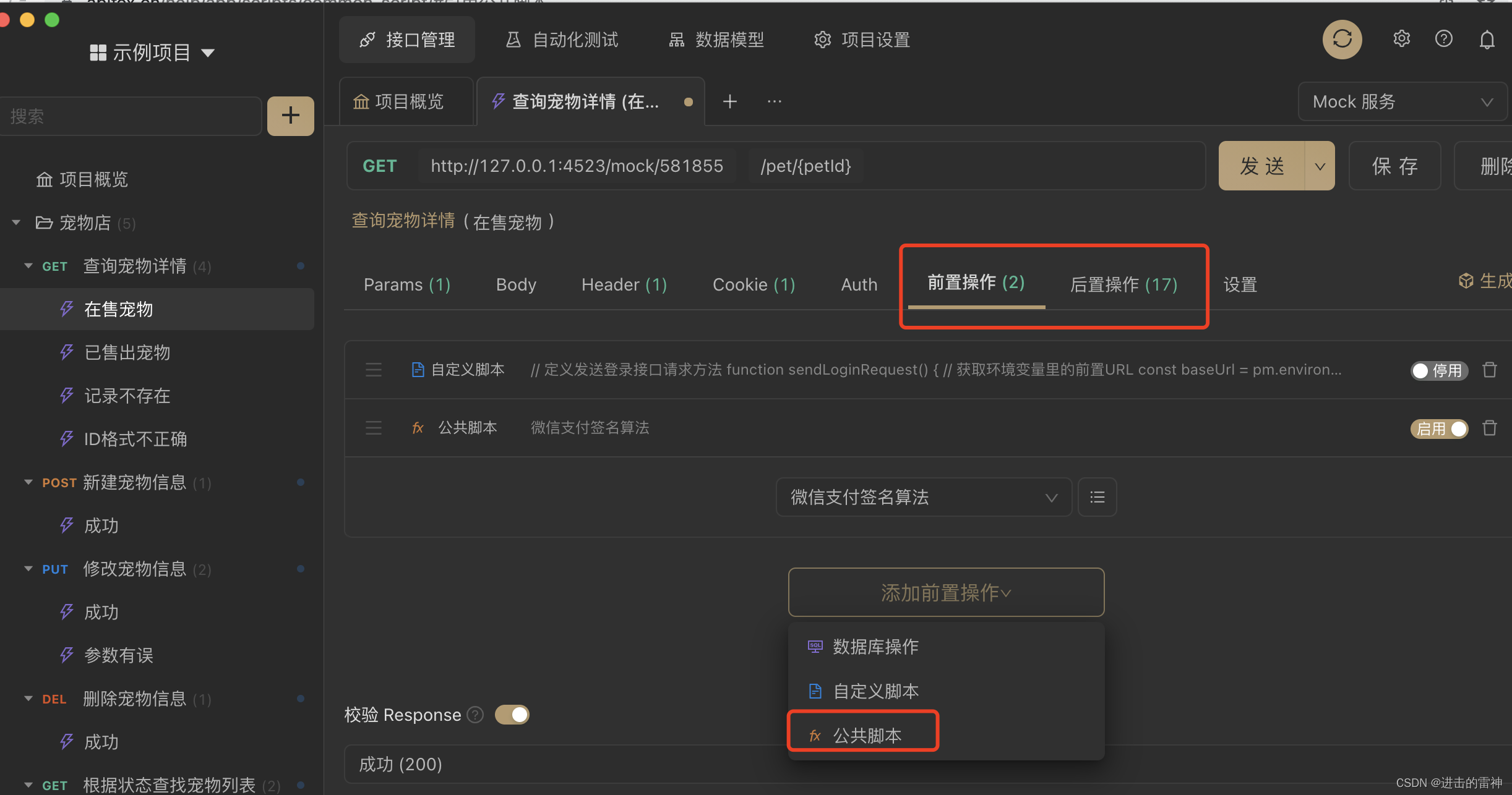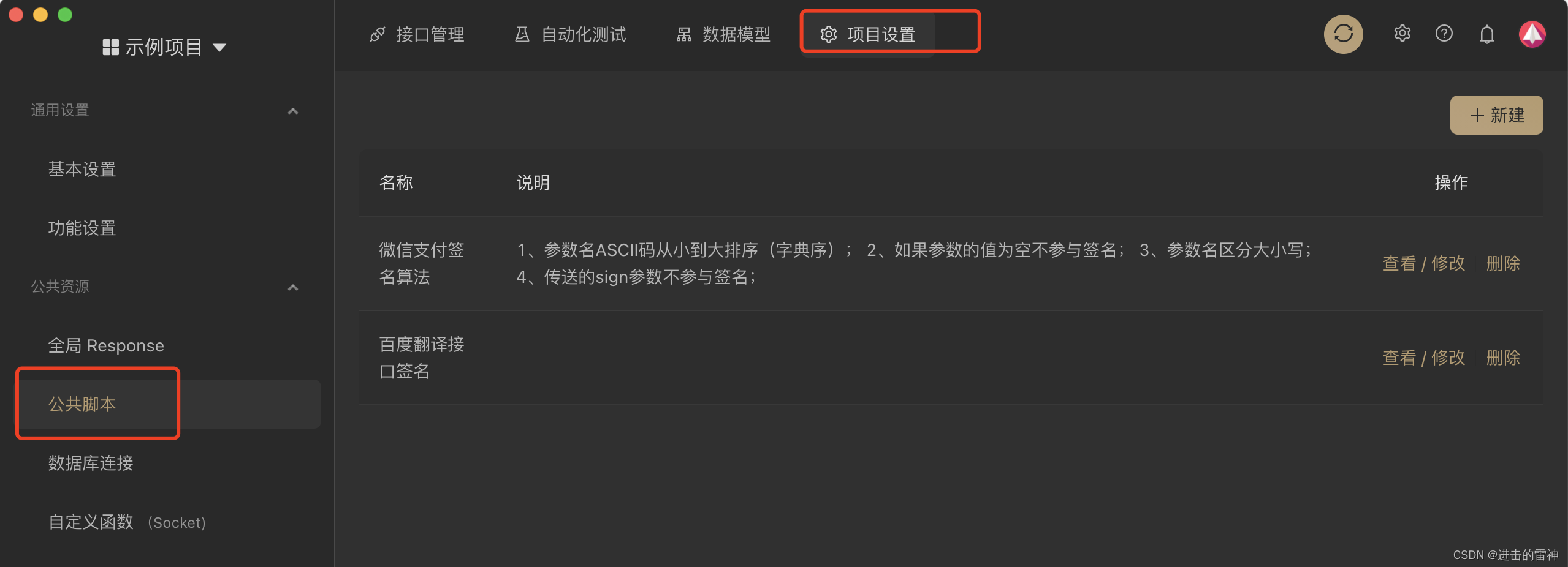 引用和调用:在API的前置脚本或后置脚本中,你可以通过名称引用和调用公共脚本。这样可以将公共脚本的逻辑应用到特定的API中,实现代码的复用和统一管理。