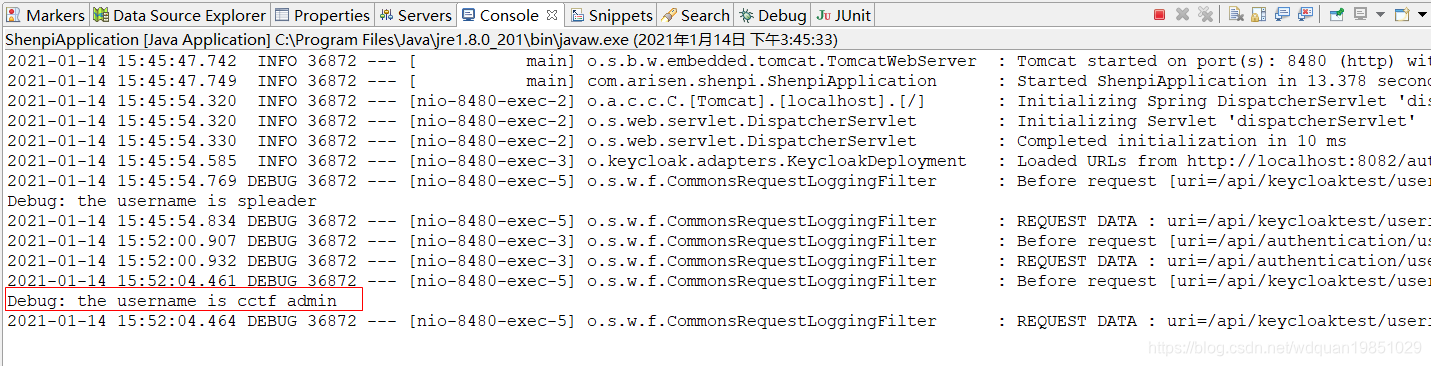 还可以将keycloak.principal-attribute定义为"preferred_username",这样可以将用户信息注入到Controller的Principal。