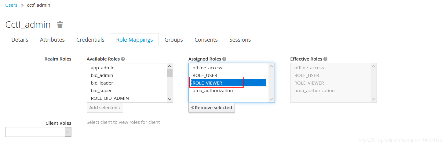 在上面的代码中,configureGlobal()方法要求SimpleAuthorityMapper确保角色没有以ROLE_作为前缀,这里配置了.antMatchers("/api/authentication/**").hasRole("VIEWER"),意思就是说如果过要访问url /api/authentication/*,那么必须要有VIEWER权限,Spring security会给role加一个"ROLE_"前缀,所以配置.antMatchers("/api/authentication/**").hasRole("VIEWER")的时候,将前缀ROLE_去掉,只需要VIEWER,Spring security会将其变成"ROLE_VIEWER",而keycloak 用户cctf_admin有"ROLE_VIEWER"这个role,所以这个用户登录后,就能够访问"/api/authentication/**"。