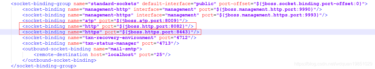 做一下简单的配置,修改一下访问keycloak server的端口,在standalone.xml文件中将http访问端口设置为8082,将https访问端口设置为8443.