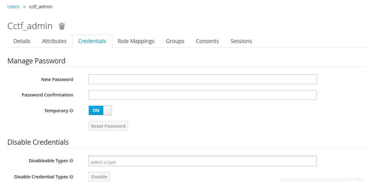 点击Tab页Credentials,给新创建的用户创建密码。
