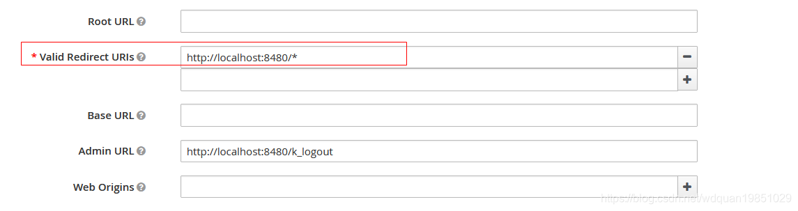 设置重定向地址"Valid Redirect URIs",必须将其设置为你的springboot应用程序的访问地址,后面我们会创建一个springboot工程使用这个client,并让这个springboot工程运行在8480端口,所以上面配置了一个redirect URL http://localhost:8480/*