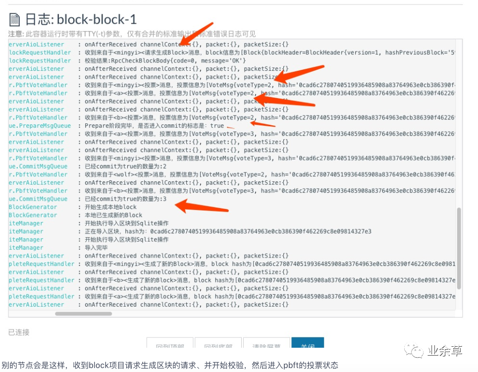而我这里对 pbft 做了修改,这是一个联盟,各个节点是平等的,而且性能要高。所以我不想让每个节点都生成一个指令后,发给其他节点,再大家选举出一个节点来搜集网络上的指令组合再生成 Block,太复杂了,而且又存在了 leader 节点的故障隐患。