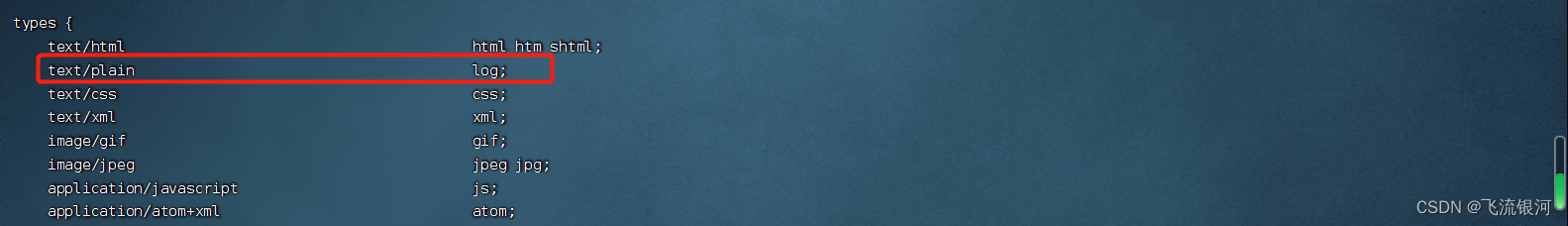 2、修改config目录下的mime.types文件,在里面添加访问日志相关内容