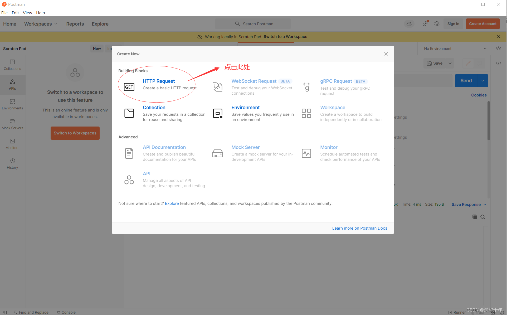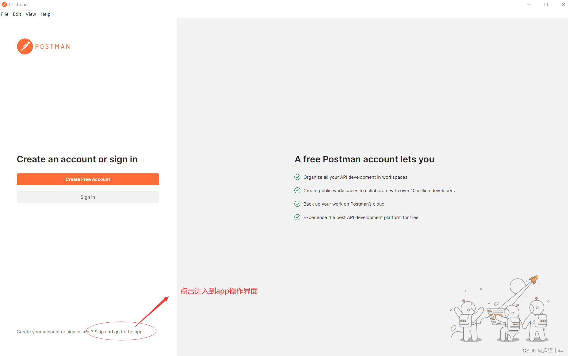 进入到postman操作界面下如下:
