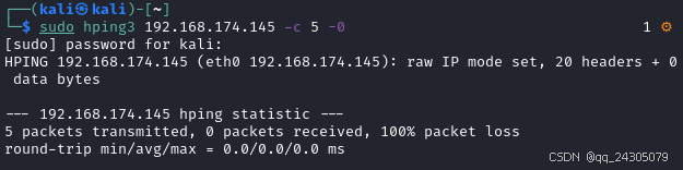 Kali Linux 默认安装好 hping3 工具,也可以通过以下命令进行安装