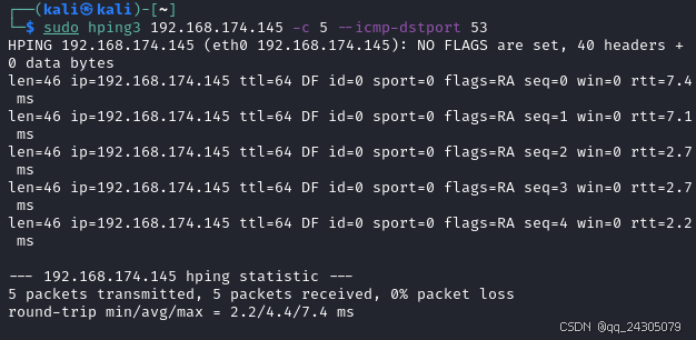 hping3 192.168.174.132 -c 5 -p 443 -P