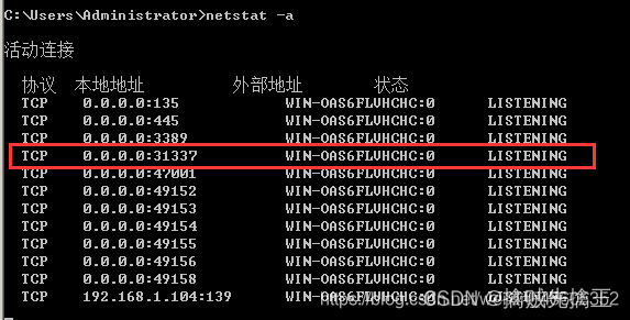 在目标主机上看到 31337 号端口已开,且服务多了一个 meterpreter (如下图)