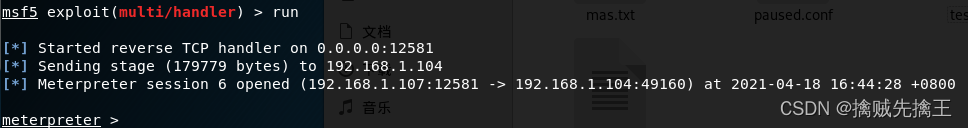 msf6 exploit(multi/handler) > exploit 或者执行 run流程总结: