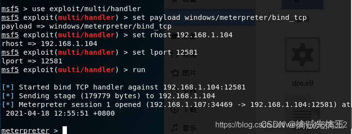 - 2. 之后进入msfconsole,使用监听模块 use exploit/multi/handler