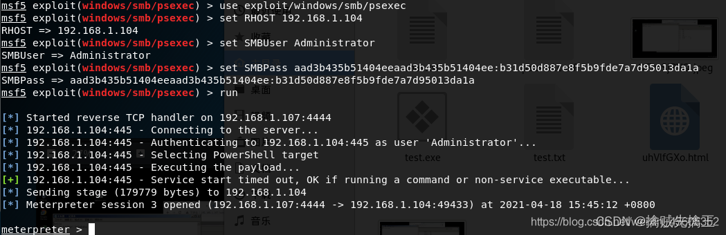 metsvc 后渗透攻击模块其实就是将 Meterpreter 以系统服务的形式安装到目标主机,它会上传三个文件: